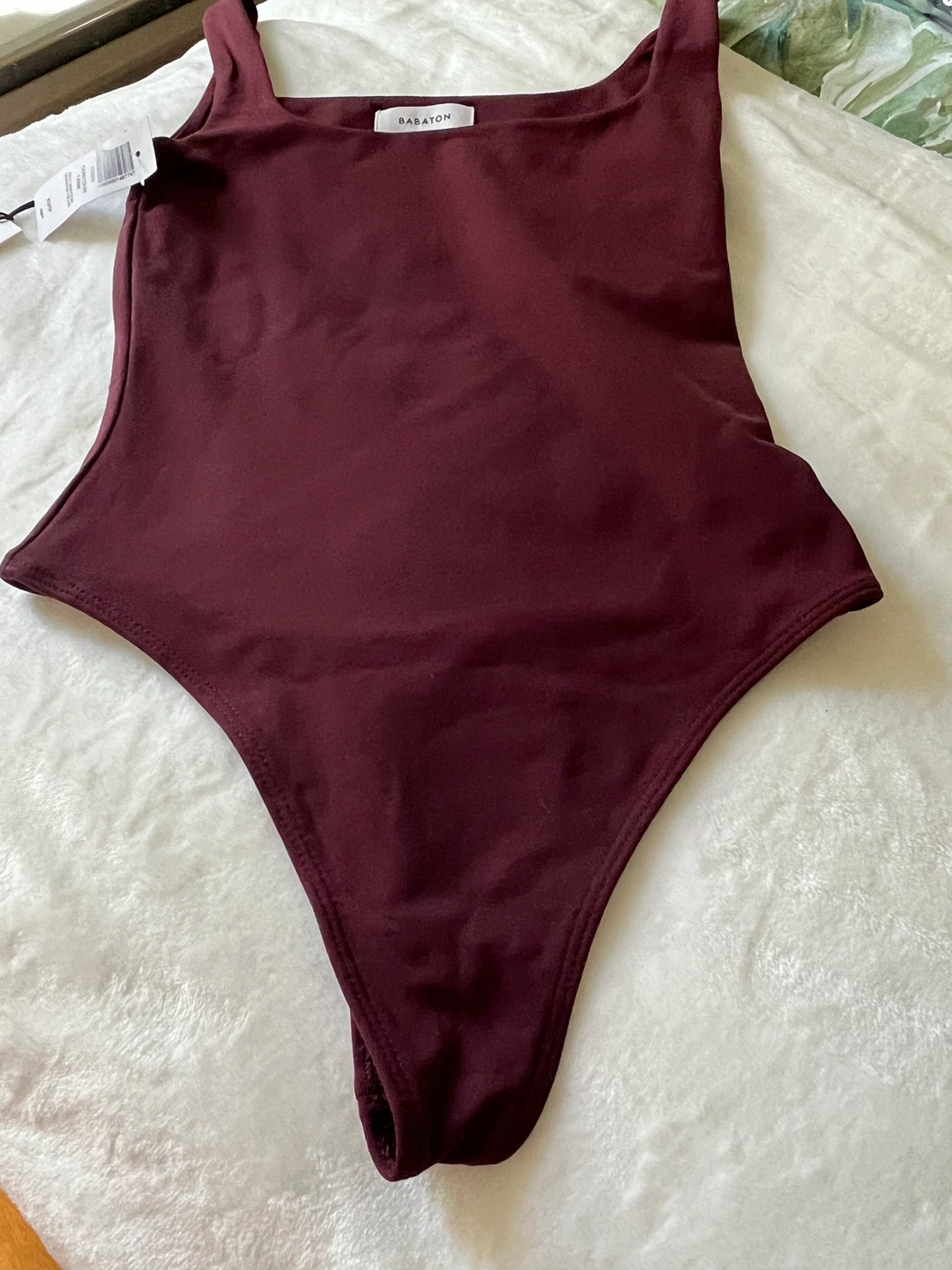 Babaton from Aritzia. Tank bodysuit in rich maroon. BNWT never worn. No clasps on bottom. Size XS.