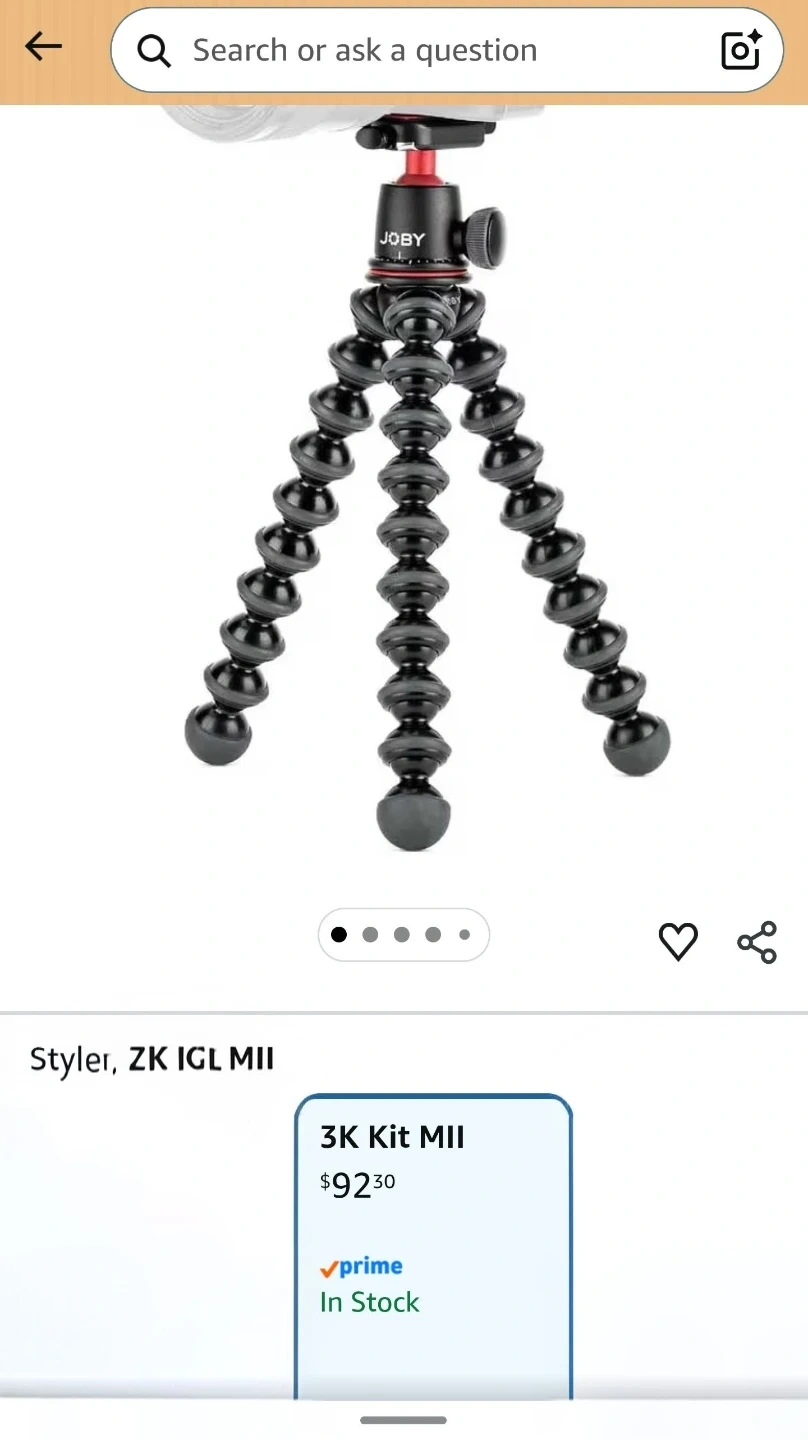 This is a Joby Gorillapod 3K Kit flexible tripod for cameras. It's black and has bendy legs for versatile positioning. Includes a quick-release plate.