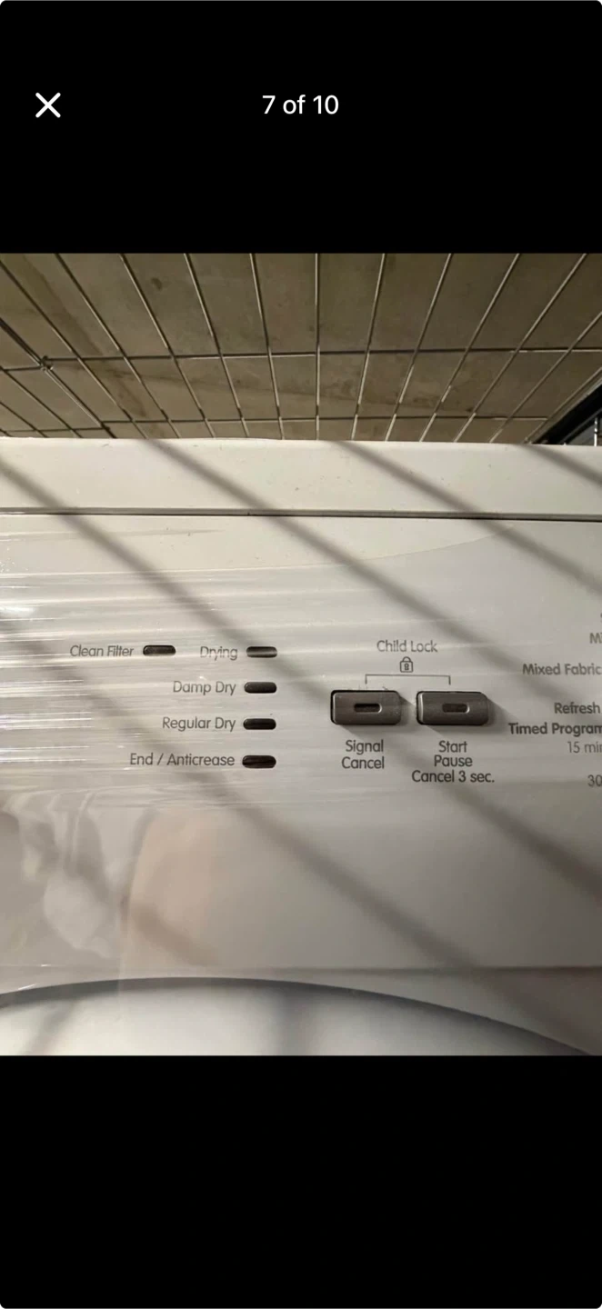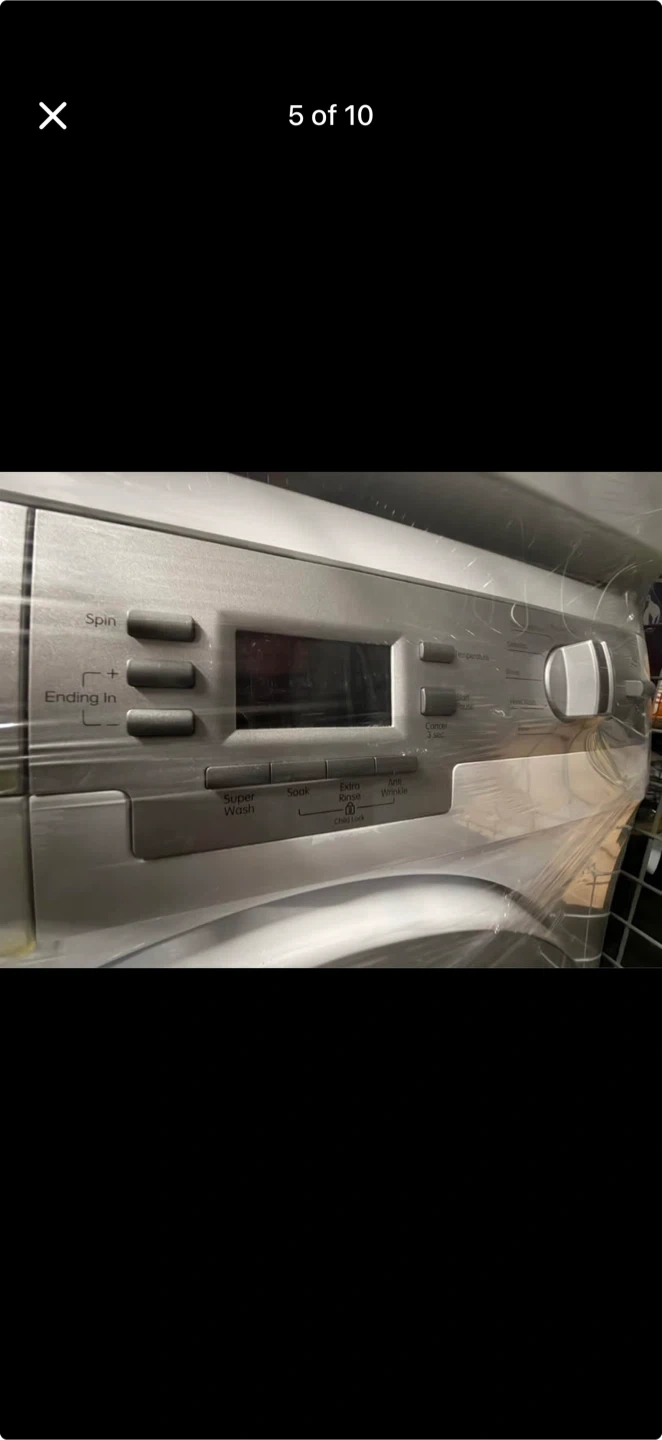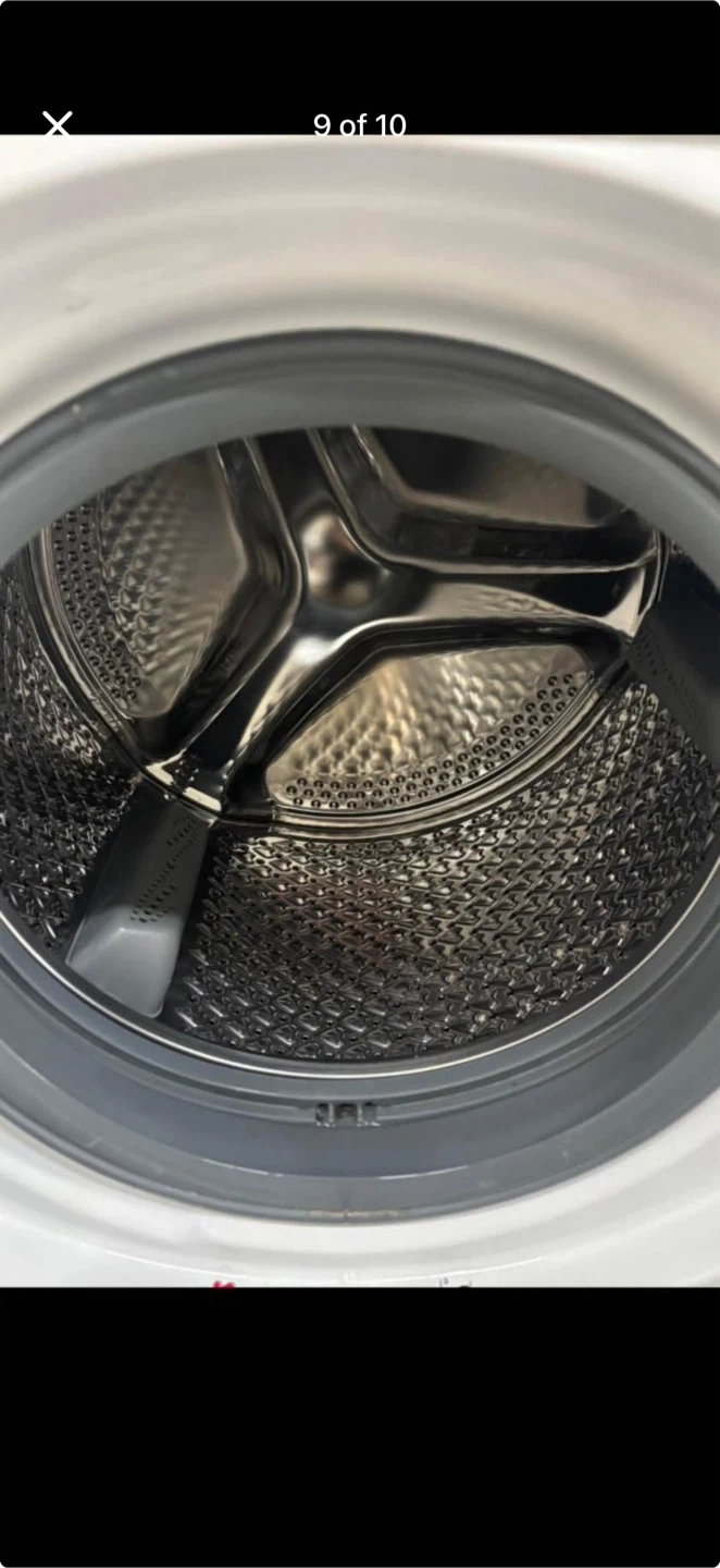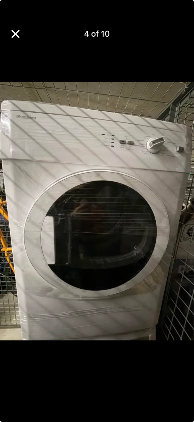 Blomberg front load washing machine. It's white and features a digital display with various wash cycles. This is a front load model.