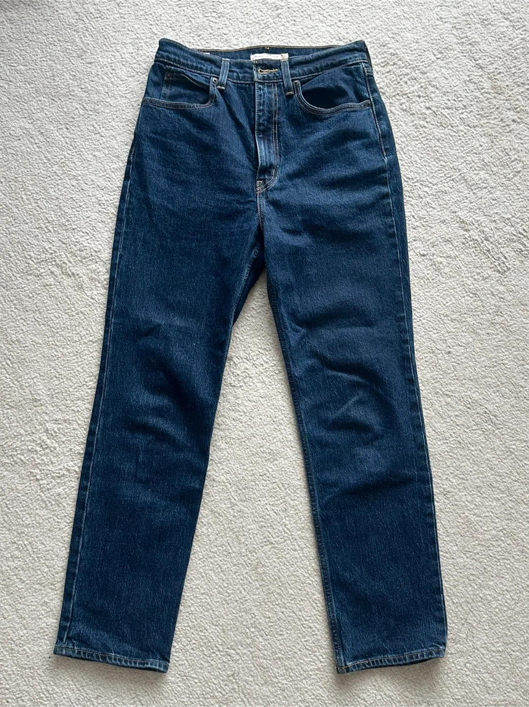 Straight leg cut with an ultra-high rise. In great condition!
