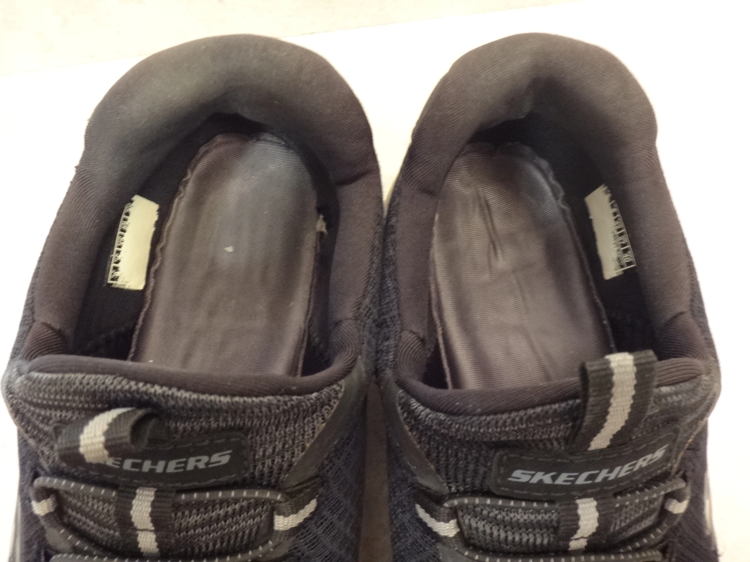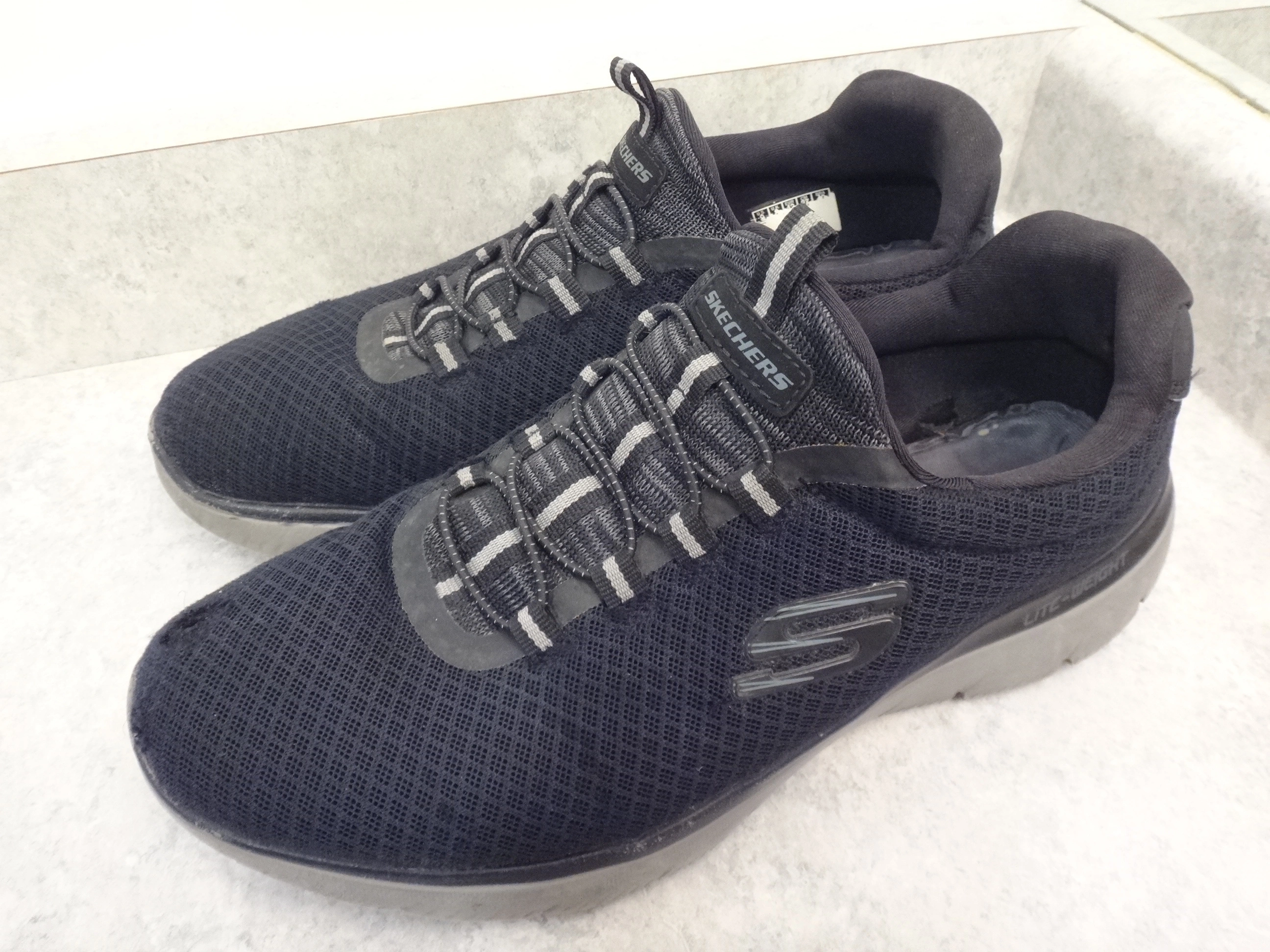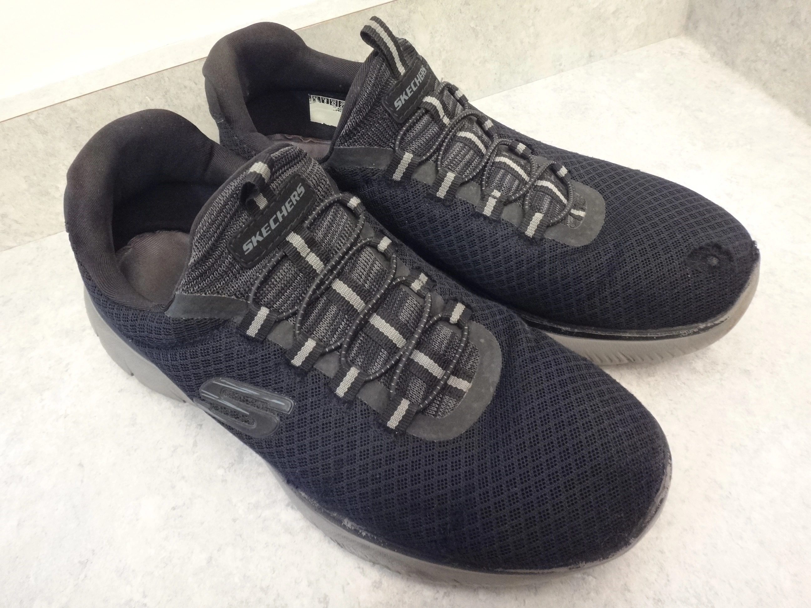 SKECHERS Men's size 9 slip on no laces to tie black sneakers running shoes.
