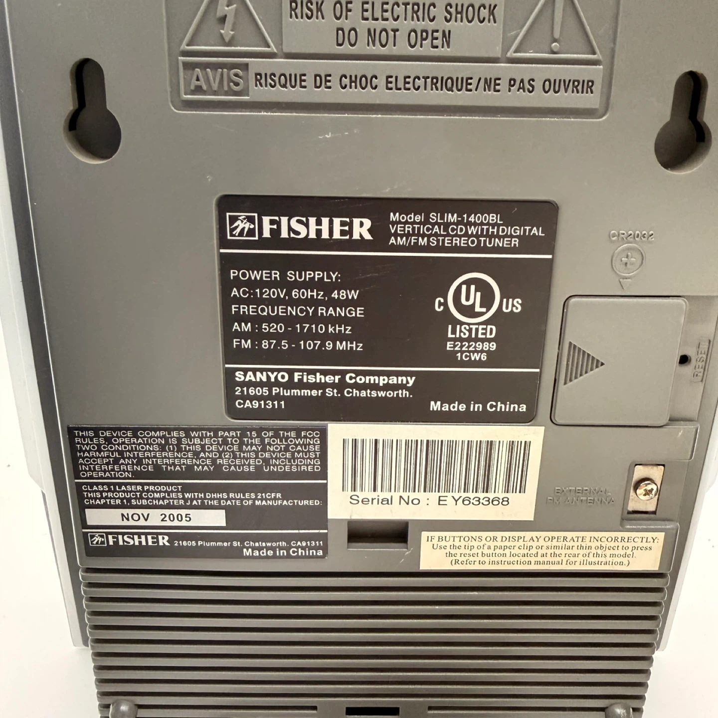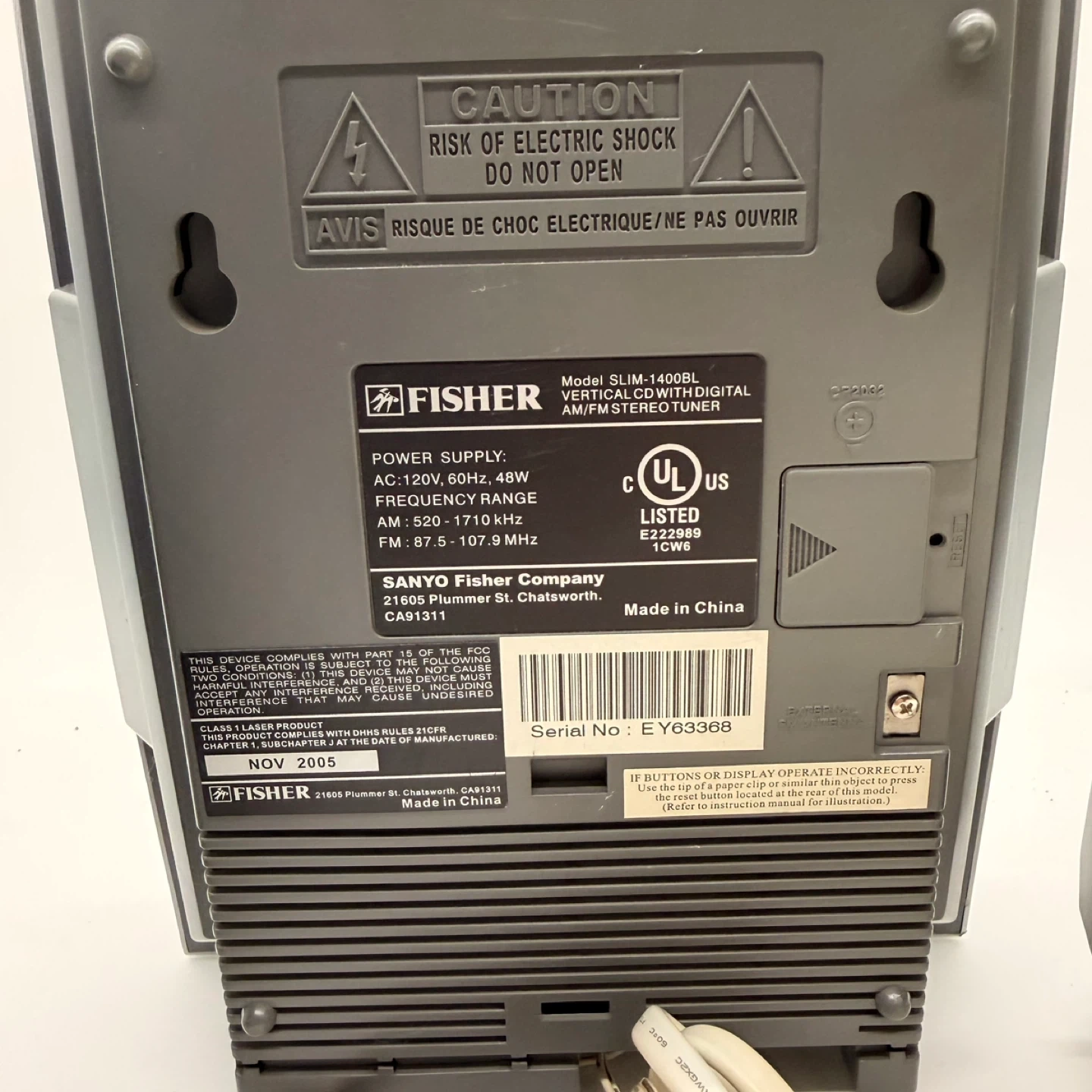 Fisher Vertical CD Stereo System SLIM-1400BL Speakers Remote