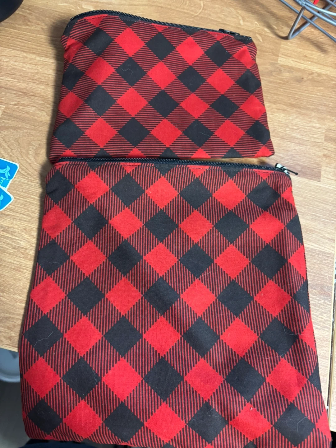 Red and Black Buffalo Plaid Zipper Pouches with Bird Lining
