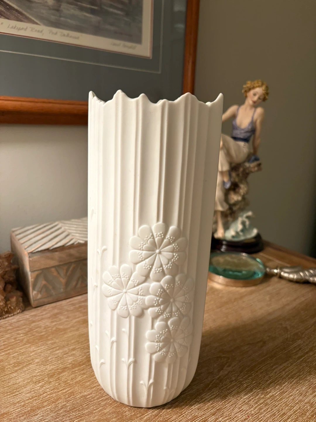 Selling a lovely Kaiser W. Germany porcelain vase with embossed flowers and rippled edges. It's in great condition and would look beautiful with flowers or on its own as a decorative piece. It stands 10 inches tall and is 4 inches wide. Niagara Falls north end pick up. Cash only