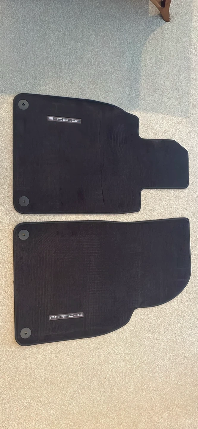 2018 Porsche 911 floor mats. BRAND NEW, never used. Full set of 4, Expresso color. Two front, two rear. Features the Porsche logo on the front mats. Includes anchor points for secure placement.