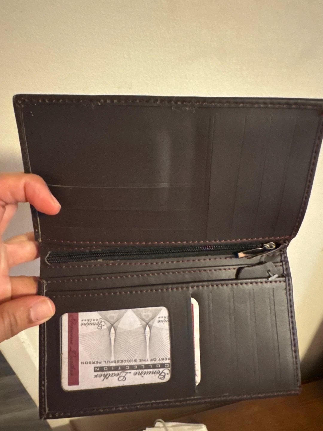 Selling a brown leather wallet. New and has plenty of space for cards and cash. Perfect for everyday use!