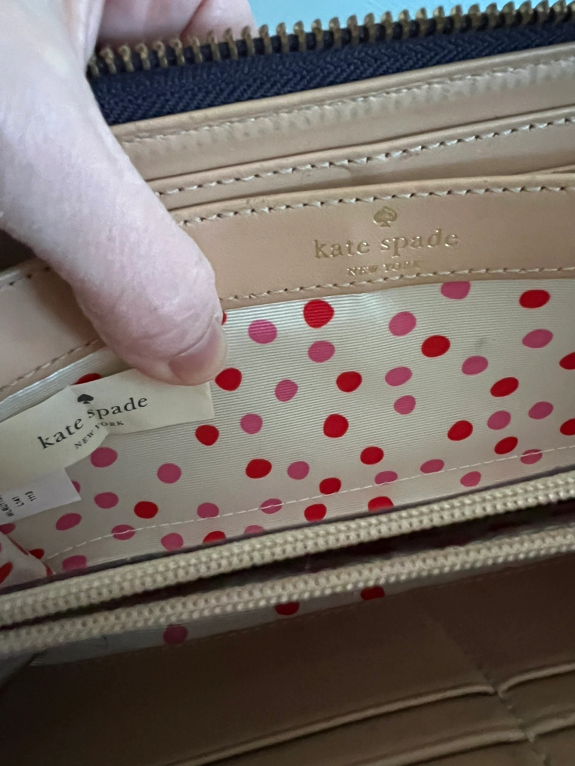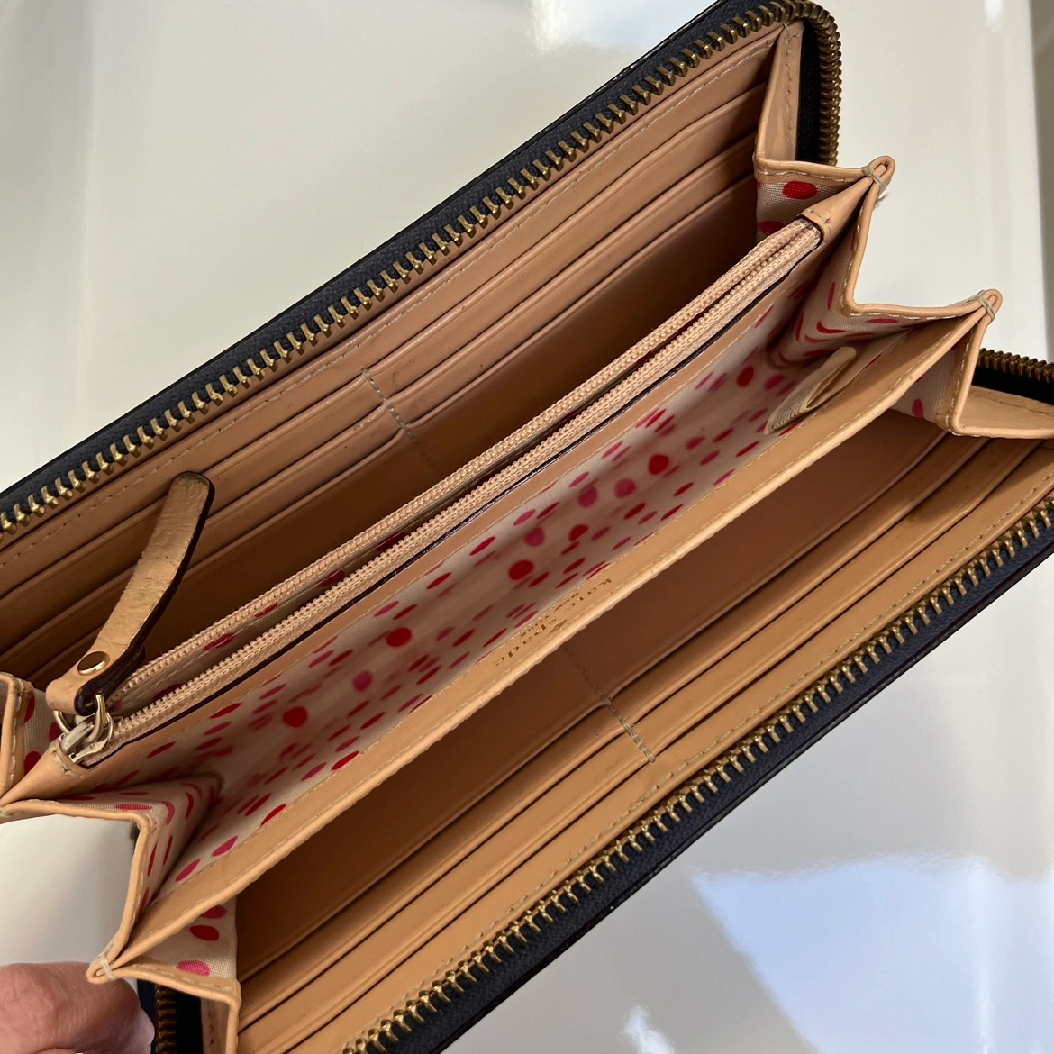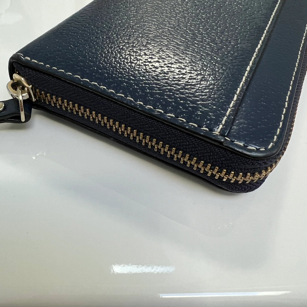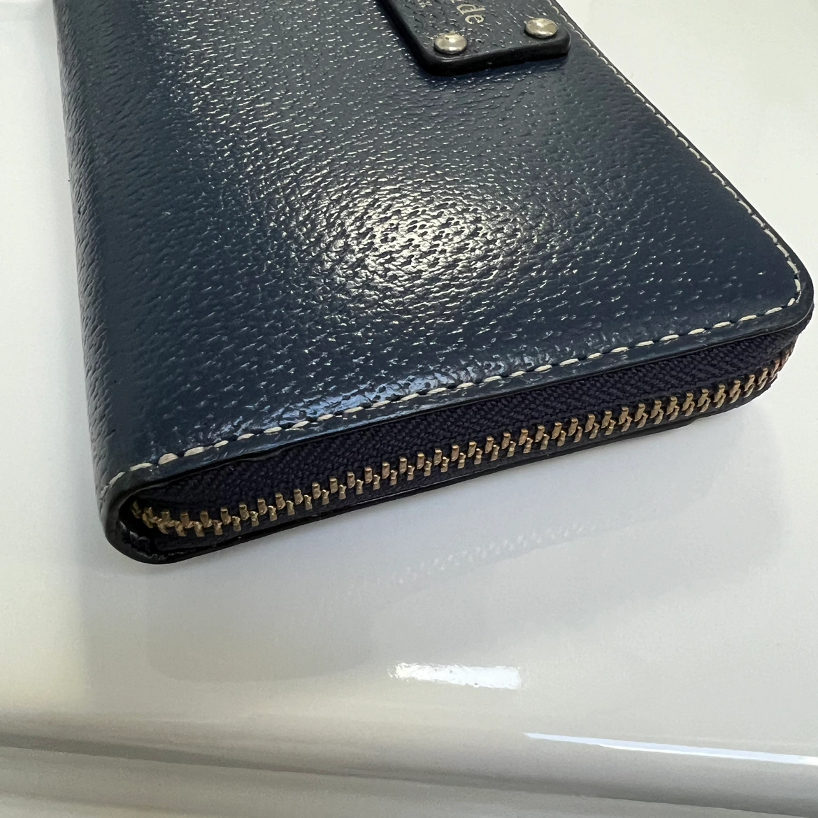 Genuine Kate Spade brand wallet in a rich navy blue. Shell 100% leather in a pebble finish.