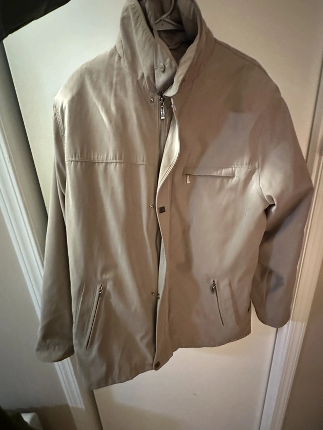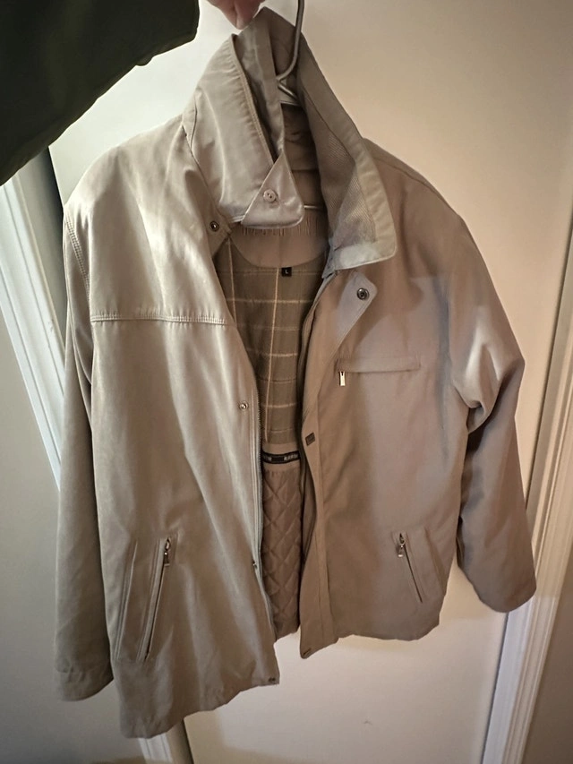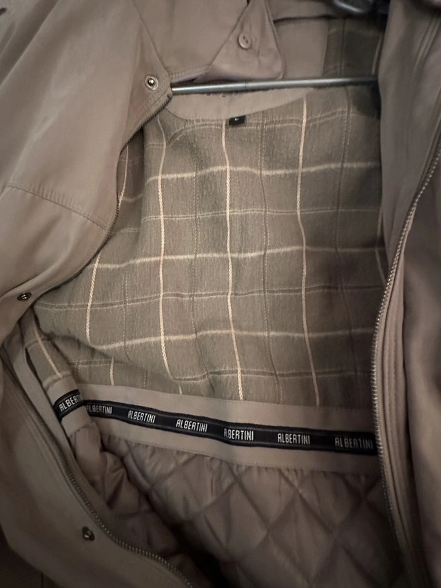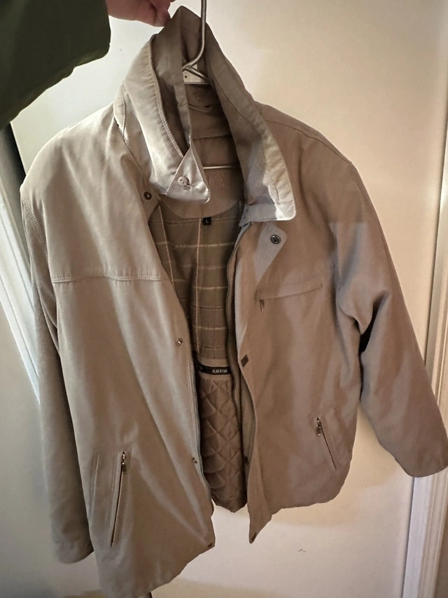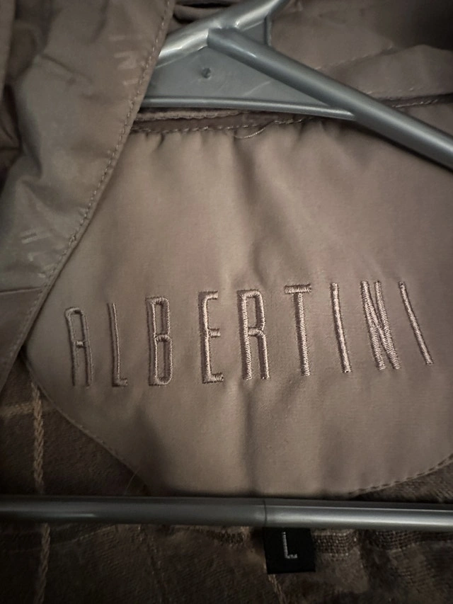 Albertini brown winter jacket for sale. Thick and heavy materials. Perfect used condition. Size large. Asking $60. Price is firm. From a bug free, smoke free, pet free home. Cash only. Pick up only, South Pembina, Fort Richmond Area.