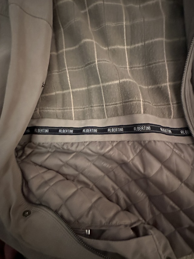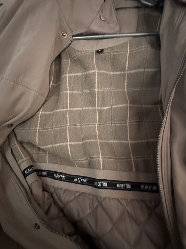 Albertini brown winter jacket for sale. Thick and heavy materials. Perfect used condition. Size large. Asking $60. Price is firm. From a bug free, smoke free, pet free home. Cash only. Pick up only, South Pembina, Fort Richmond Area.