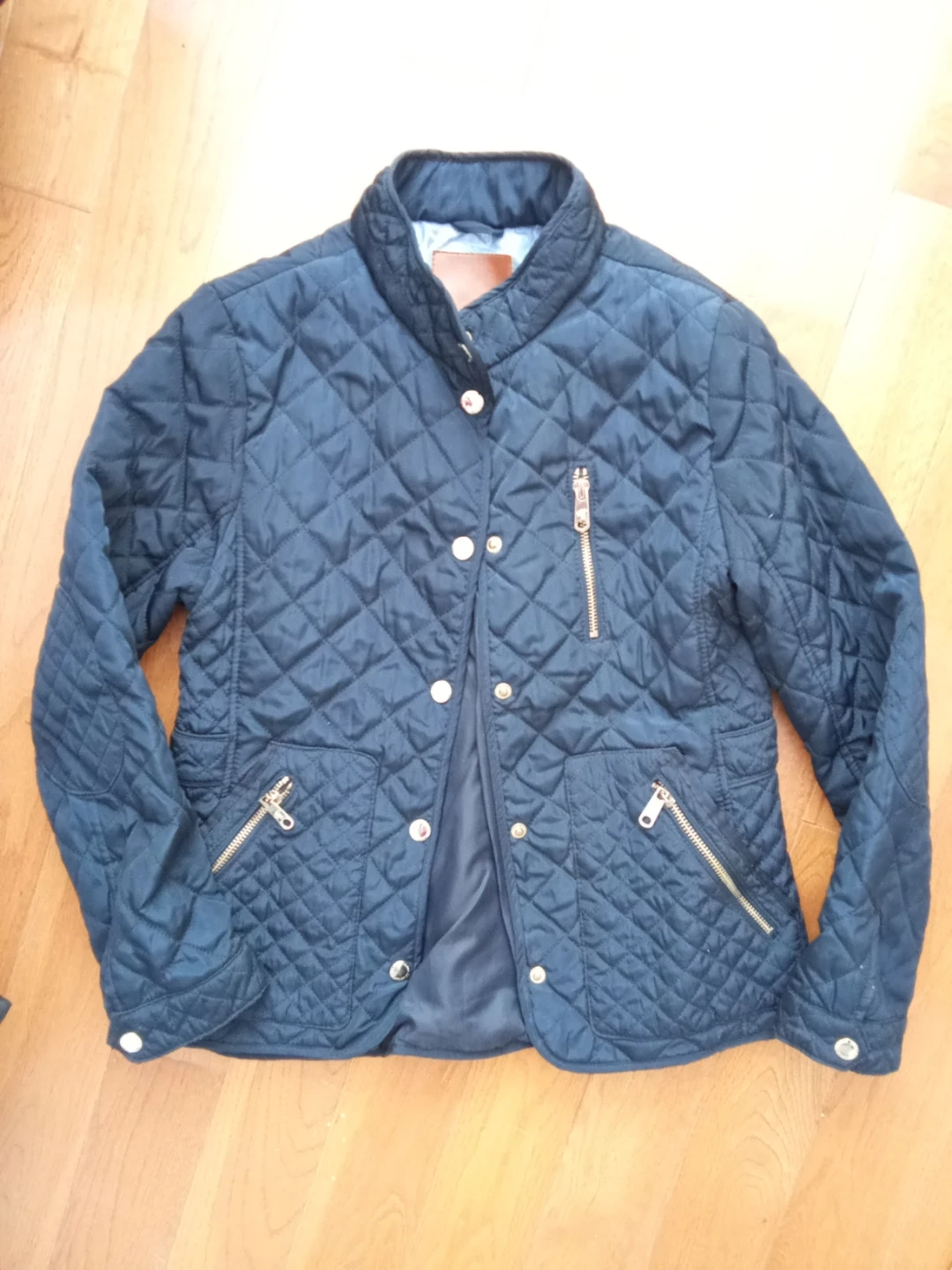 ZARA GIRLS quilted jacket from the Summer Collection. It's a navy blue colour with gold zippers. This jacket is suitable for cooler spring and summer evenings.