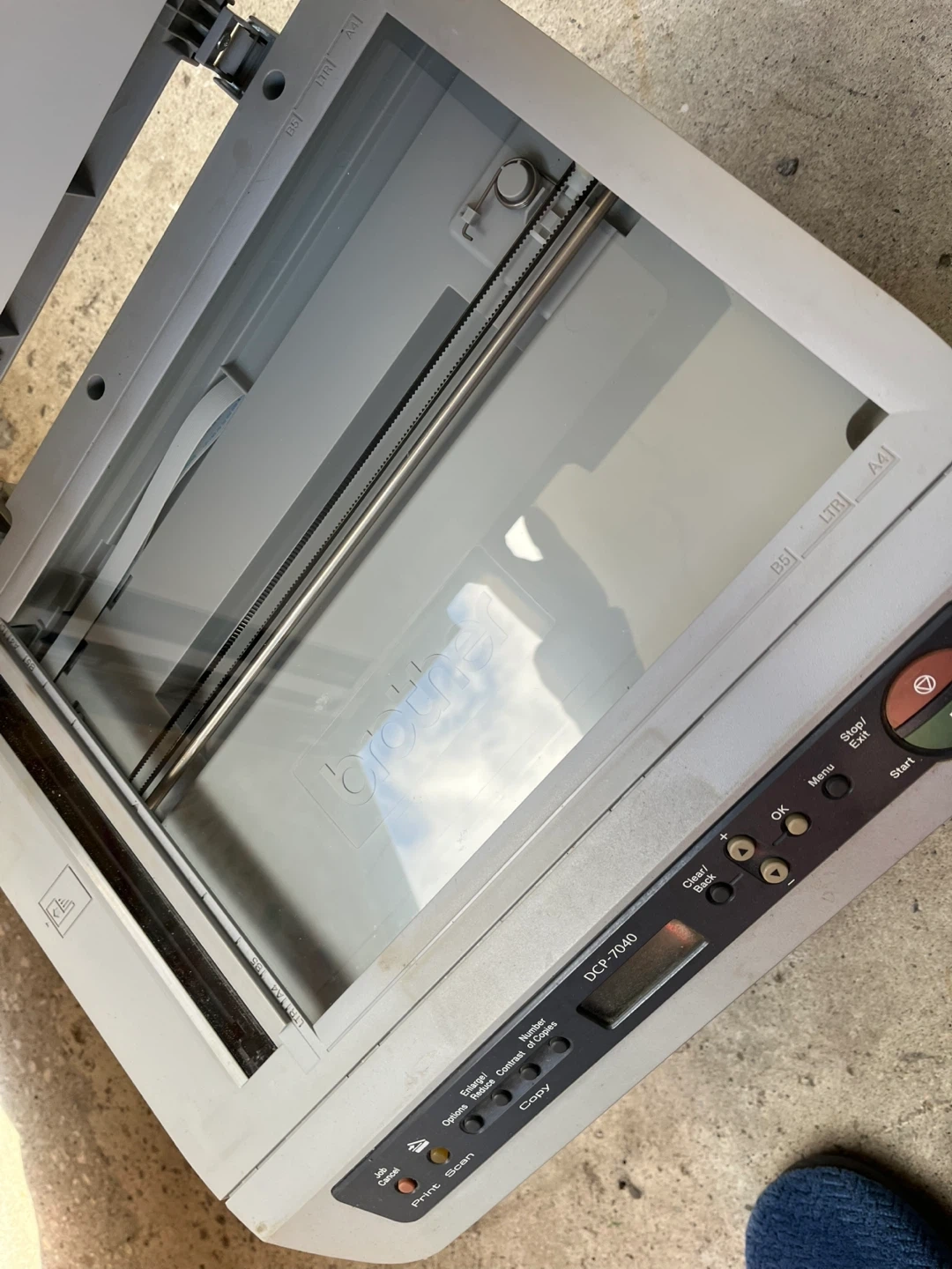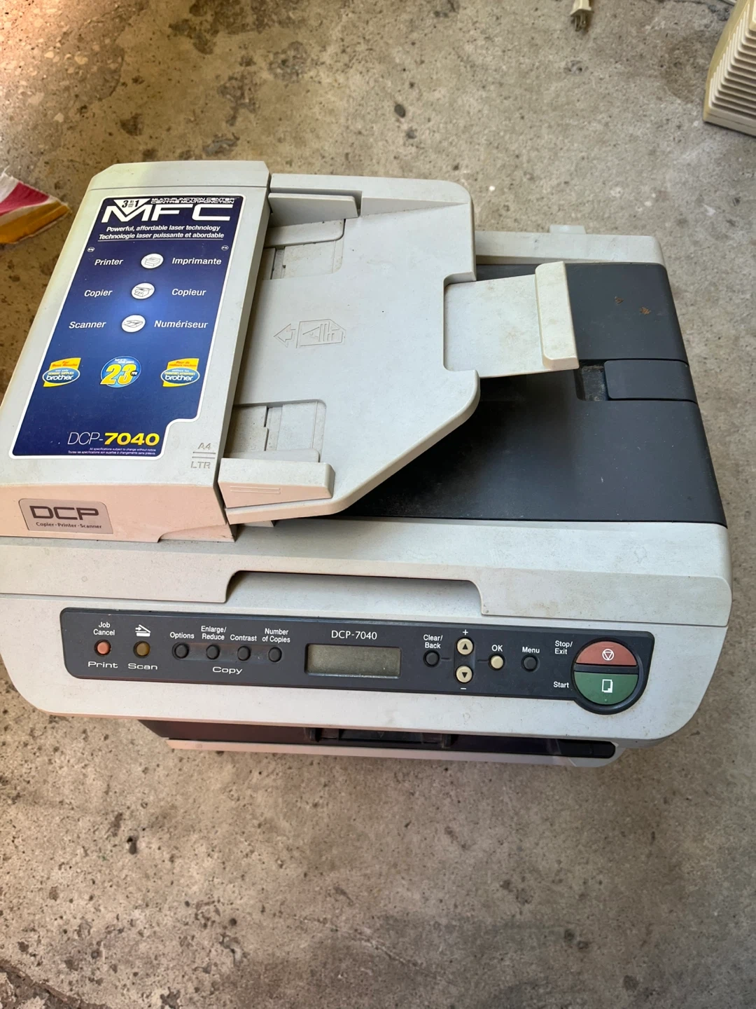 Selling a Brother DCP-7040 all-in-one laser printer, scanner, and copier. It's a reliable machine for home or small office use. Perfect for printing documents, scanning important papers, and making copies quickly and easily. It has some signs of use but is still functional.