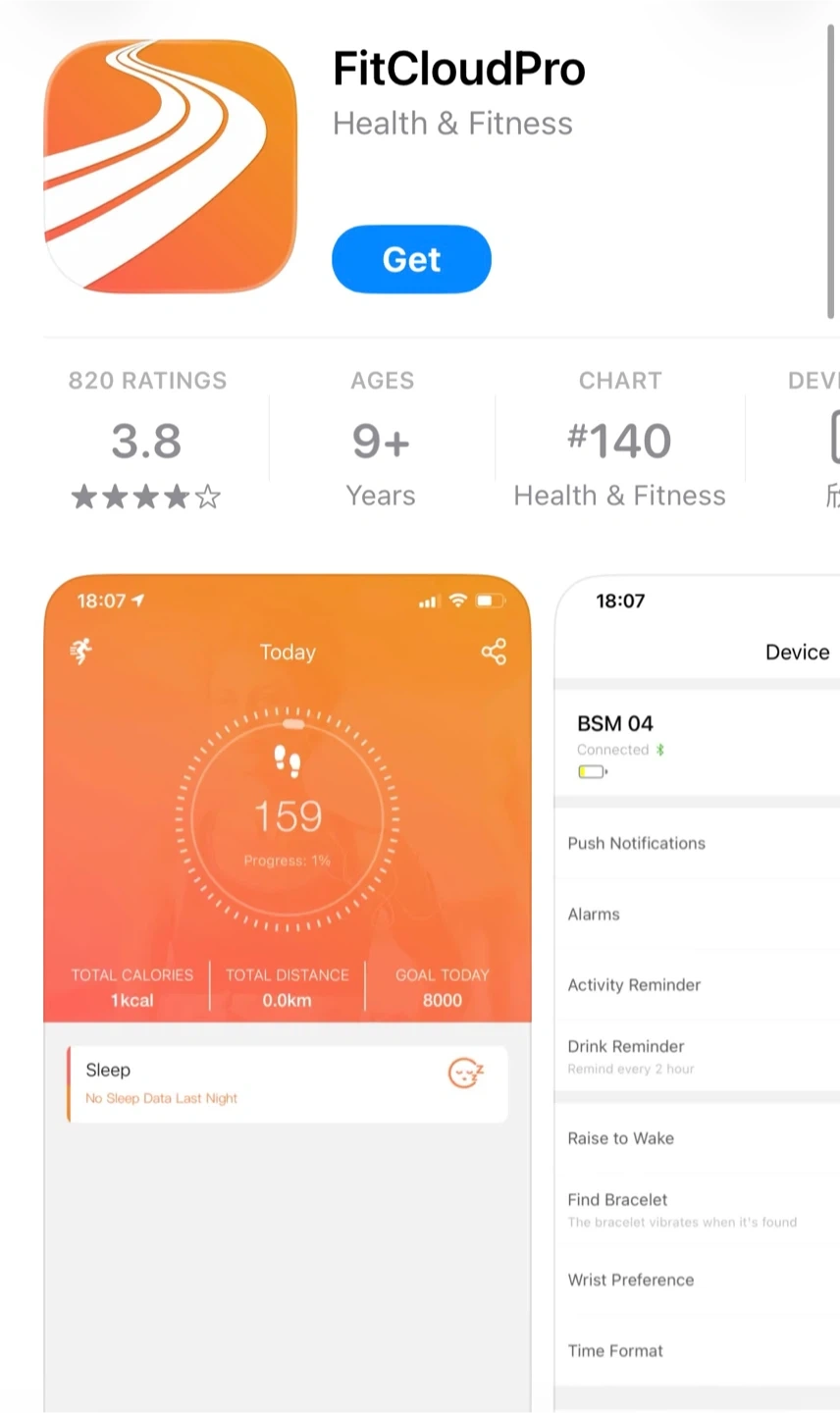 This black smartwatch tracks sleep, blood oxygen, and weather. It connects to the FitCloudPro app for health and fitness monitoring. Includes charging cable.