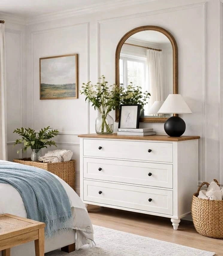 Versatile three-drawer dresser/cabinet, brand new in box.