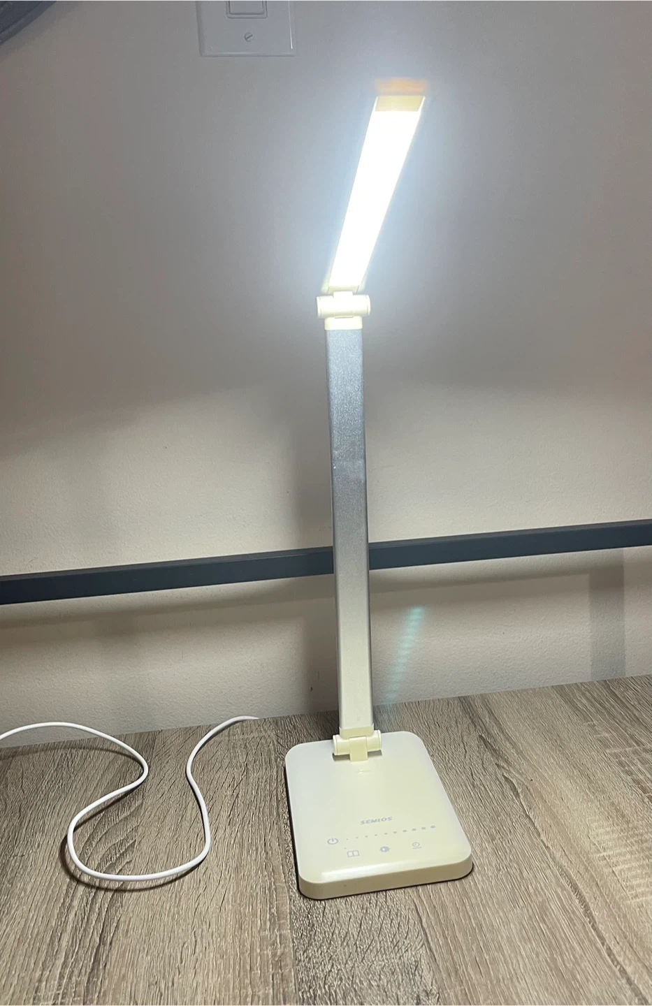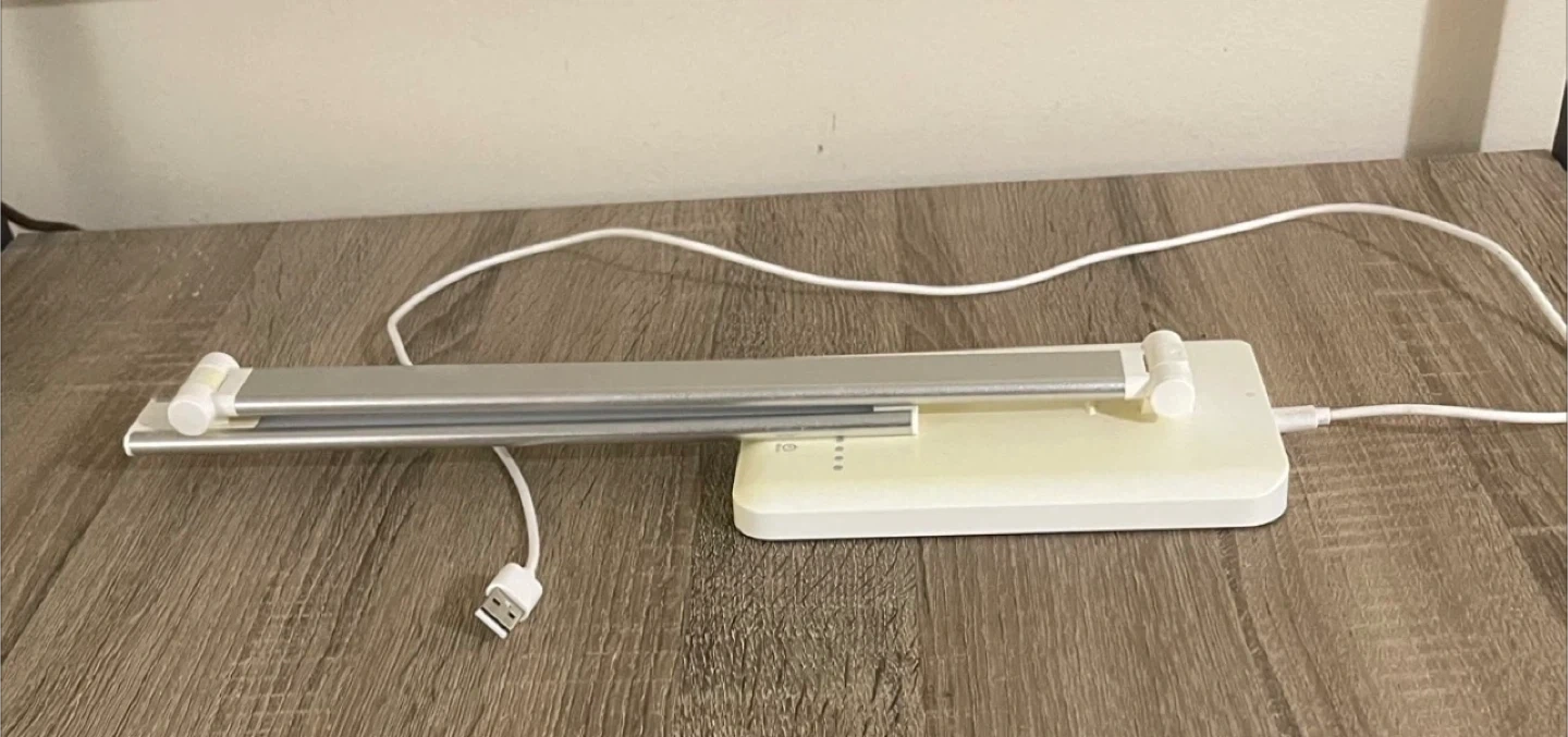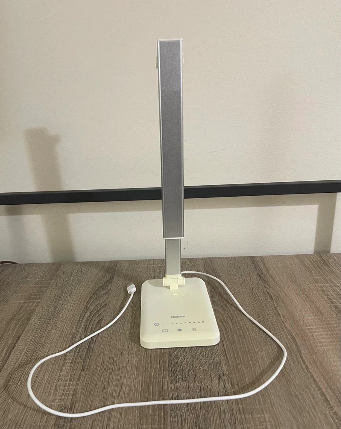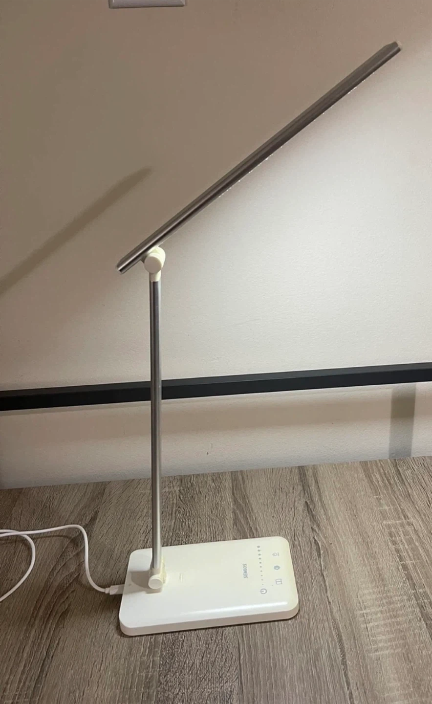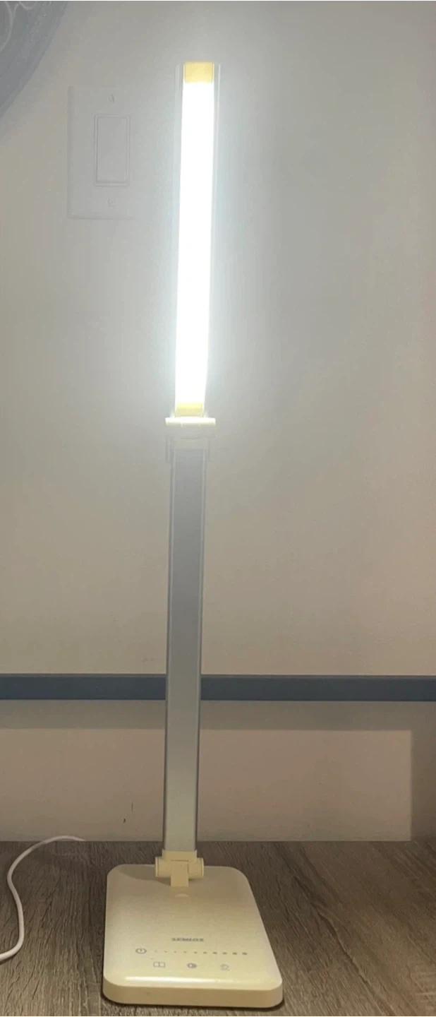 This is a SEMLOS LED desk lamp. It's adjustable with touch controls and brightness settings. includes a USB charging port, and it's great for desks or work areas needing good lighting. It can also be used as a nightstand lamp. Excellent condition, rarely used. From smoke-free, pest-free, and pet-free home.