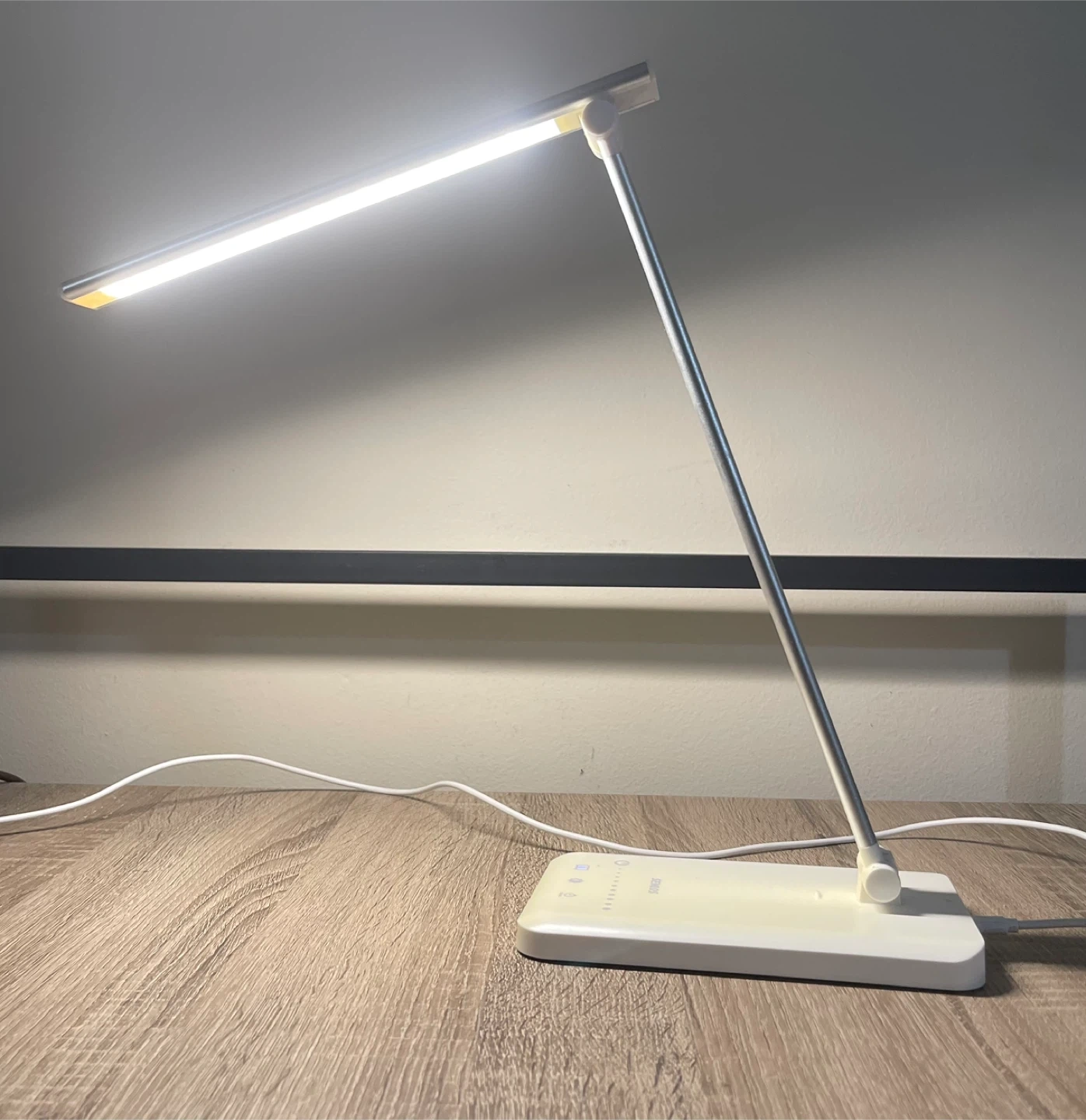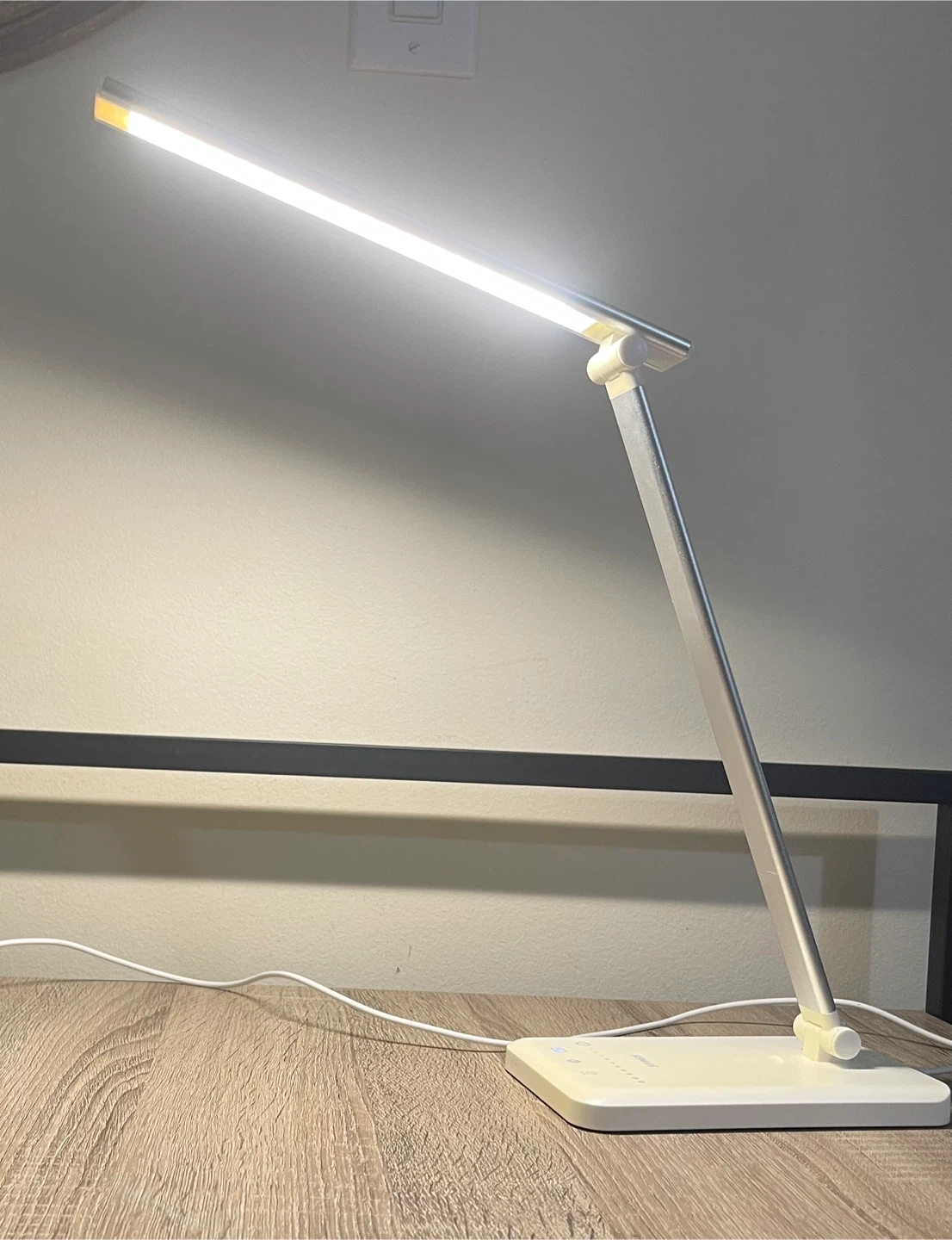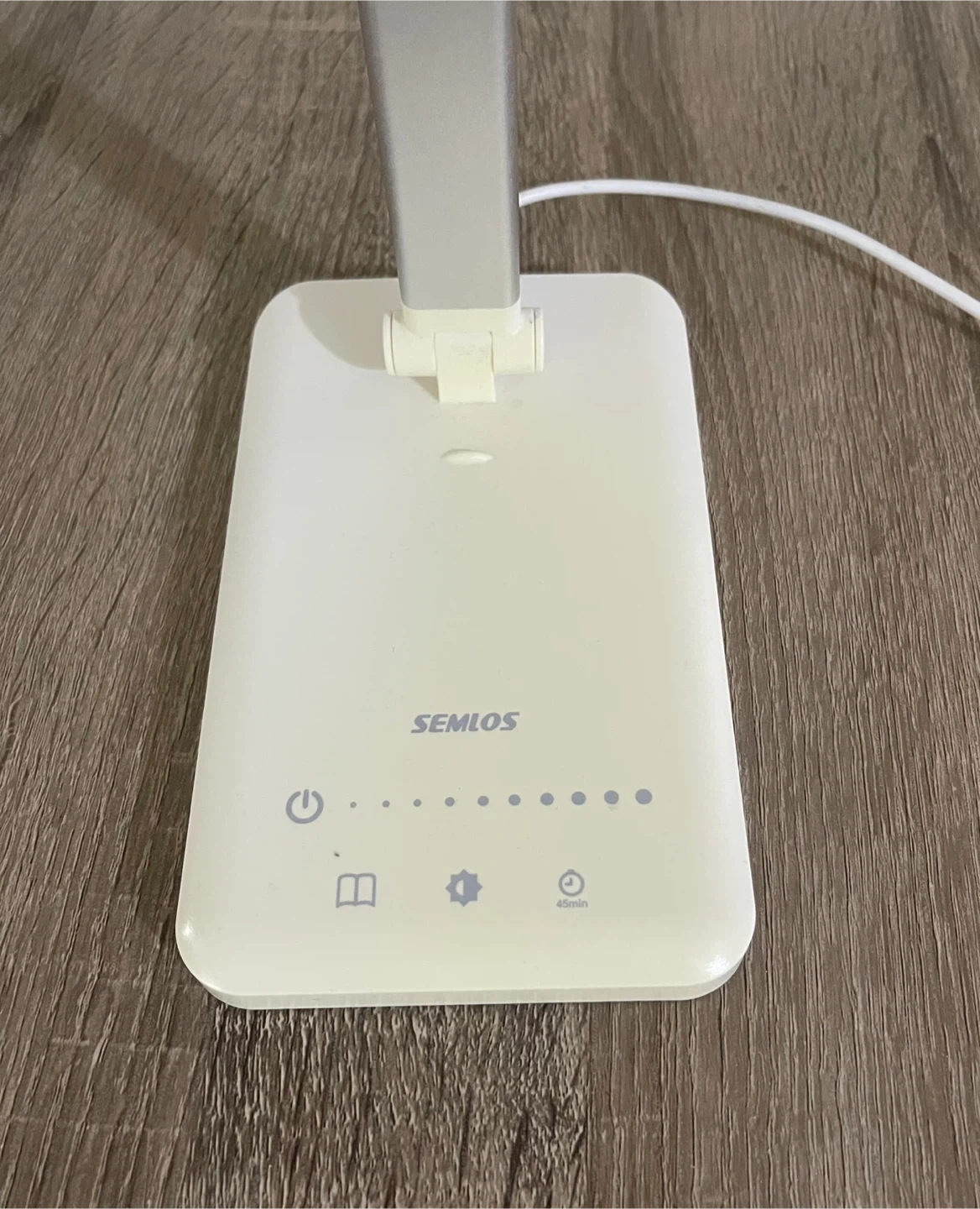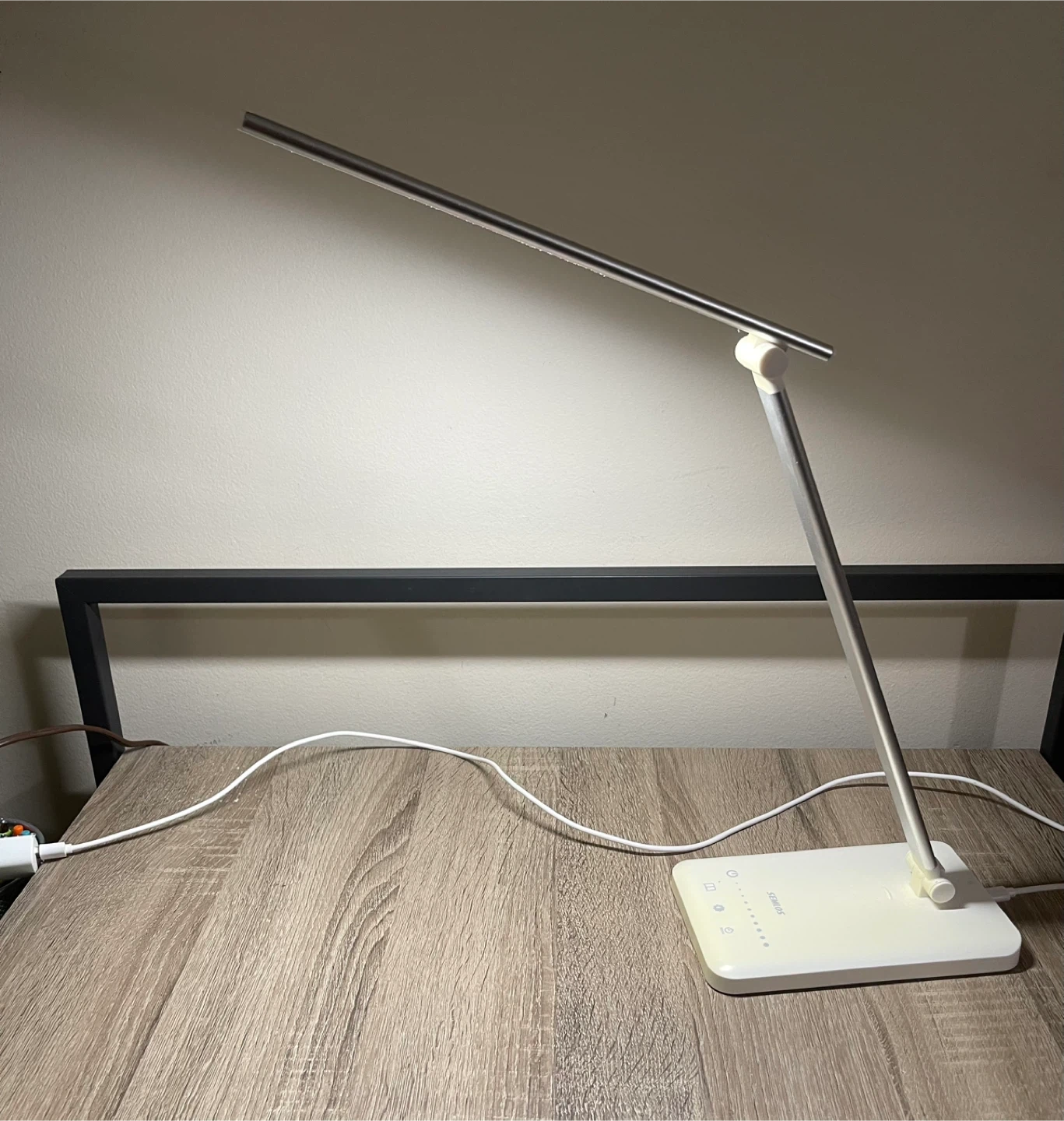 This is a SEMLOS LED desk lamp. It's adjustable with touch controls and brightness settings. includes a USB charging port, and it's great for desks or work areas needing good lighting. It can also be used as a nightstand lamp. Excellent condition, rarely used. From smoke-free, pest-free, and pet-free home.