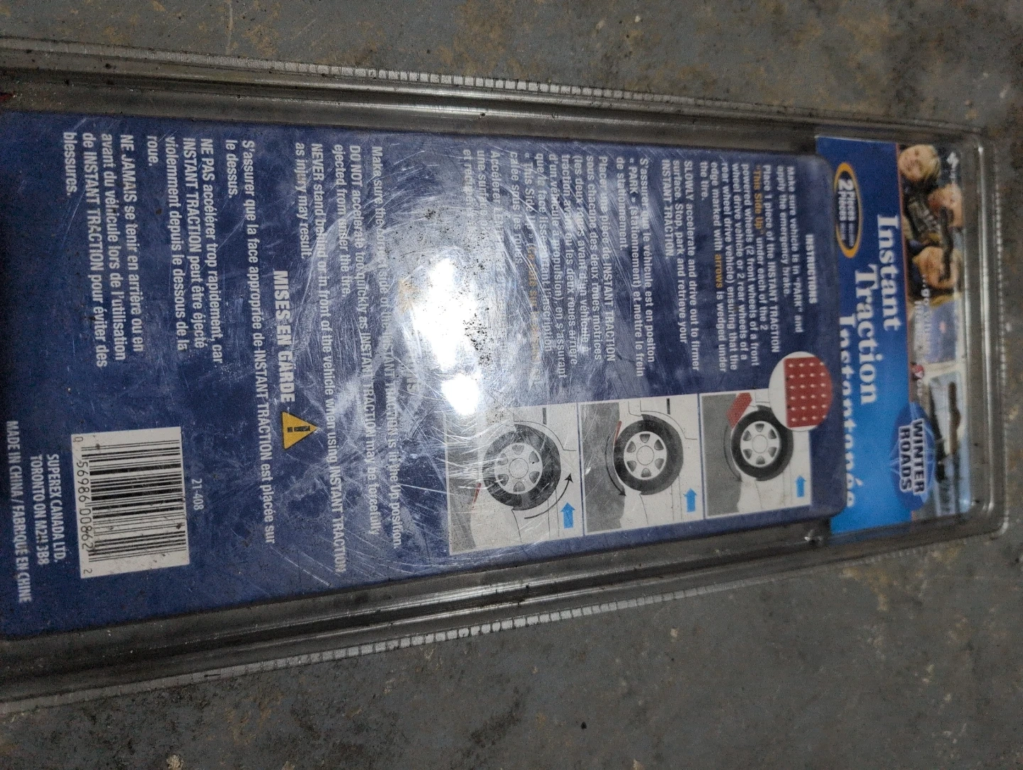 This package includes 2 pieces of Instant Traction mats for your vehicle. They are designed for use in snow or mud to help you get going. Aggressive tread design locks into snow or mud to help you get going.