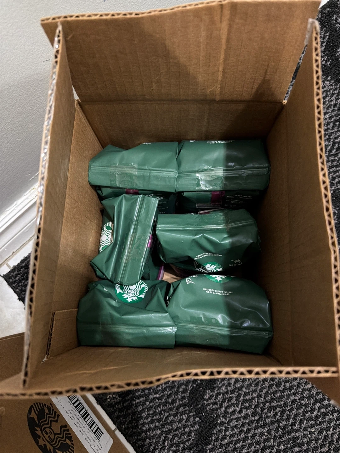 This is a 6-pack of Starbucks Morning Joe dark roast coffee. Each bag contains 100% Arabica coffee with notes of chocolate and dried fruit. Each bag is 12 oz.
