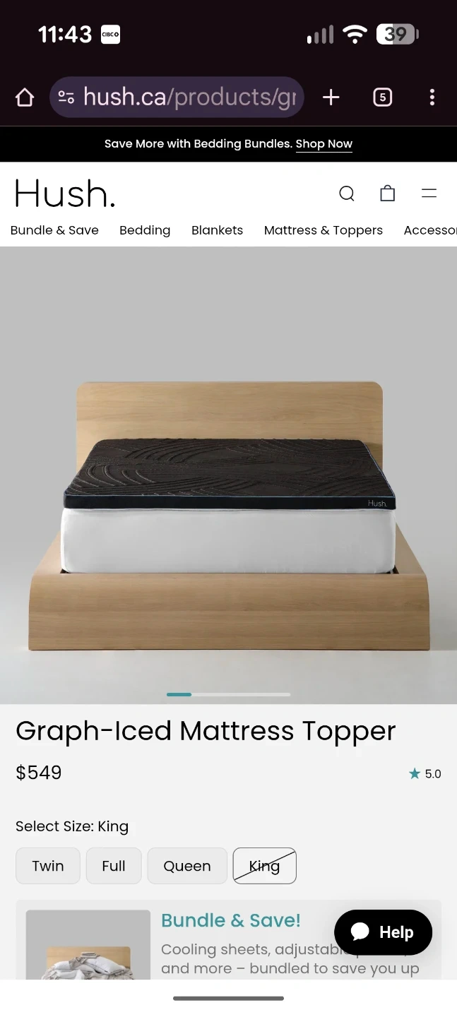 Selling a Hush Graph-Iced mattress topper in King size! Originally bought for $549. It's designed to help you sleep cooler and more comfortably. Perfect for upgrading your current mattress!