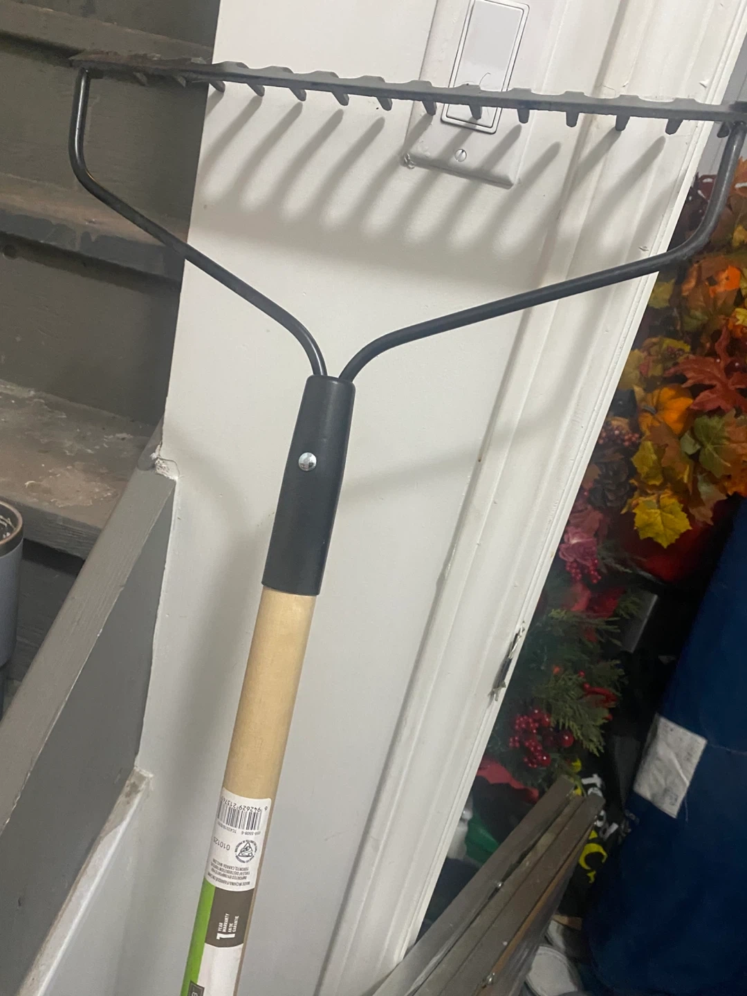 This Garden Club bow rake has a metal head and a 51-inch hardwood shaft. It's designed with 14 tines for effective yard work. A durable tool for raking leaves and debris.