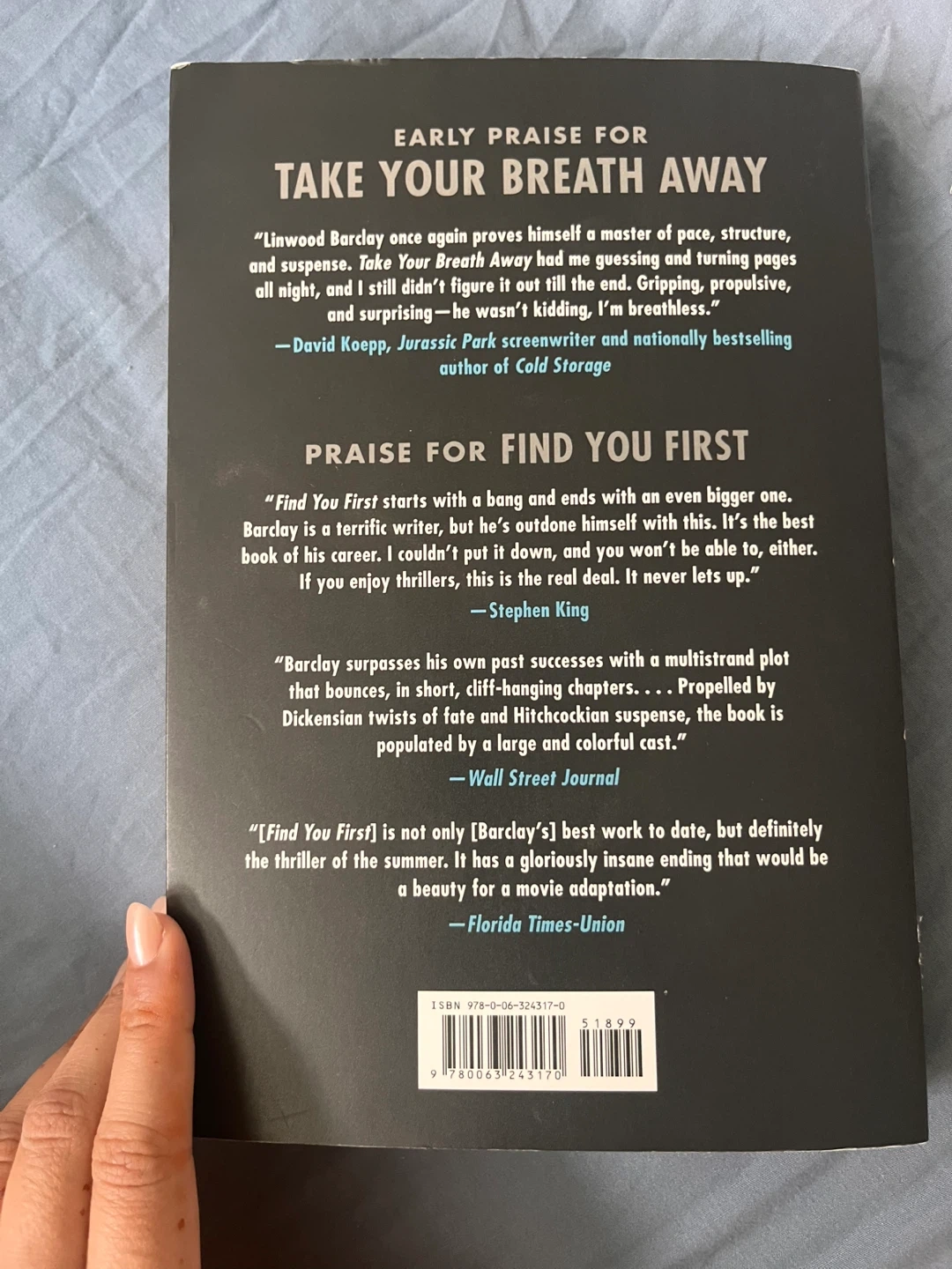 A suspense novel by New York Times bestselling author Linwood Barclay. "Take Your Breath Away" is a thrilling story of a missing woman and a husband suspected. This book features a twisty plot and colourful characters.