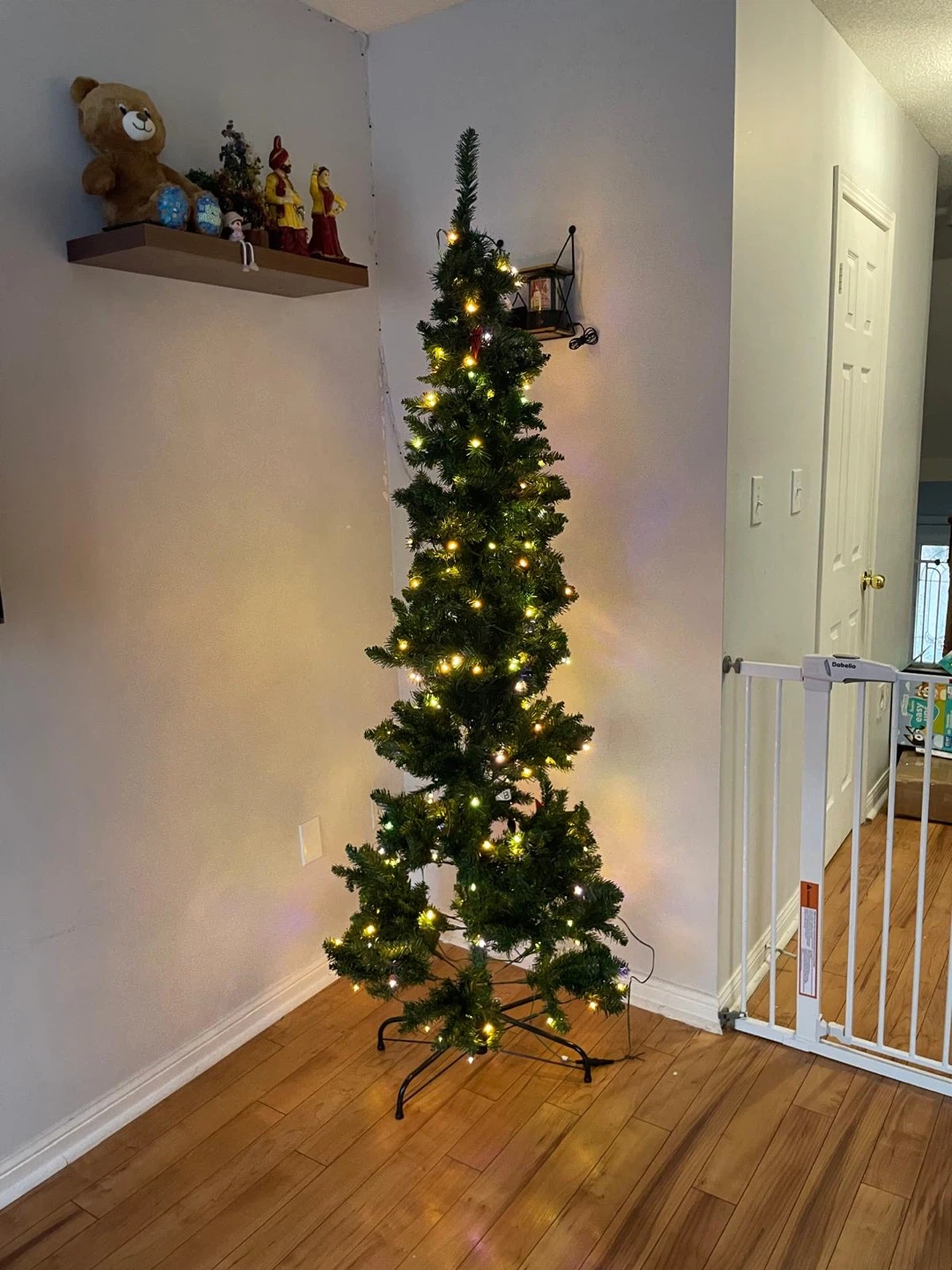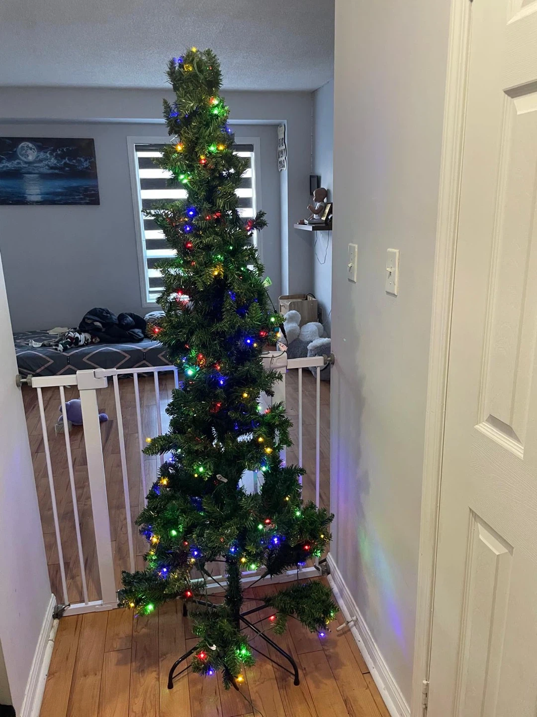 Selling a pre-lit artificial Christmas tree! It's in great shape and ready to bring some holiday cheer to your home. It has a slim profile, making it perfect for smaller spaces. Comes with multi-coloured lights already installed, so you can skip the hassle of stringing them yourself