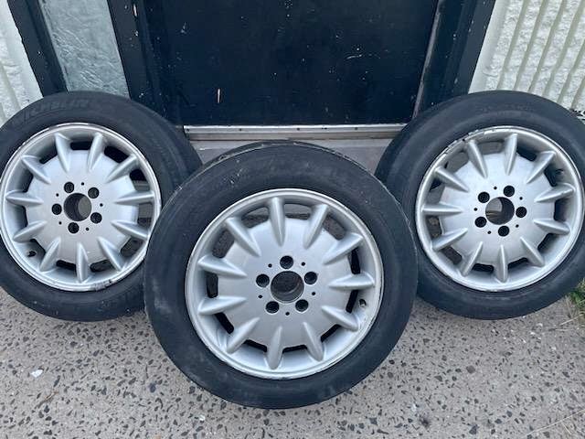 This is a set of THREE (3) rims and tires for 1998-2002 Mercedes Benz E320 models. They may fit other models, so please do your research. I'm listing them for a friend of mine, so I will put you in touch with him. They are in good shape, and sold as-is, as shown. They would need to be picked up in Staten Island, NY 10303. They are NOT $1, please make a reasonable offer on them. I would replace the tires as they are older. My friend's number is listed, so you can text or call him with any interest.