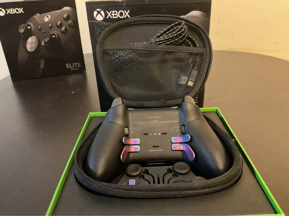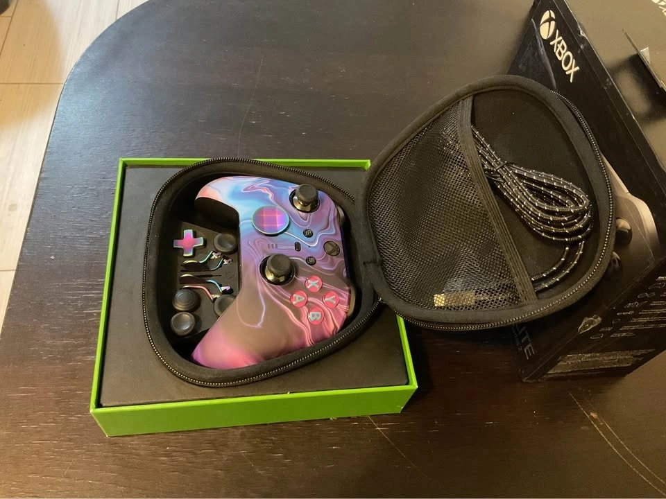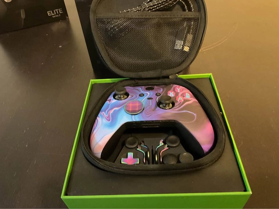 For Xbox Series X/S, Xbox One, Windows, Android, and iOS. This is a brand new, customized Elite Series 2 controller, open box but in excellent condition. There's no stick drift or sticky buttons. It comes with the original case, box, and all accessories. Feel free to test the controller before you buy. I can do bundle deals if you're interested in multiple items, just message me first. The price is negotiable, so feel free to send a reasonable offer. Please see the photos and ask any questions you have before purchasing. All sales are final, but I will replace the controller with a new one if something happens to it within 2 months, provided there's no physical or cosmetic damage. Please ask questions to confirm.