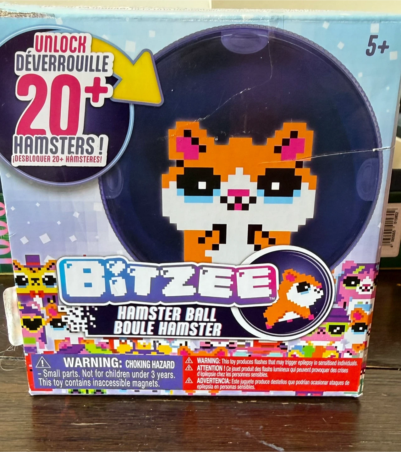 This Bitzee interactive hamster ball toy unlocks over 20 different digital hamsters. It's a fun electronic pet for kids aged 5 and up. It features an illuminated display inside the ball.