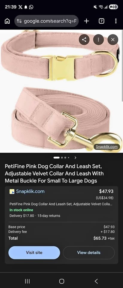 ✨ PETIFINE VELVET DOG COLLAR & LEASH SET – MEDIUM ✨