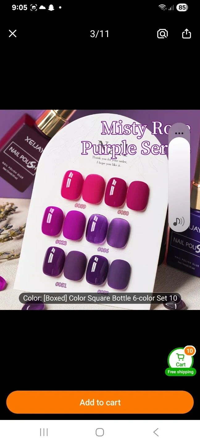 This set includes six shades from XEJIYAI's Misty Rose Purple Series. Each bottle contains 15ml (0.5 fl.oz) of nail polish. Colours are vibrant and suitable for various looks!