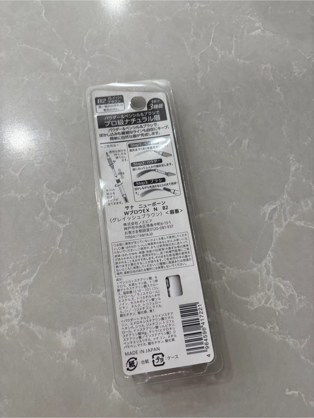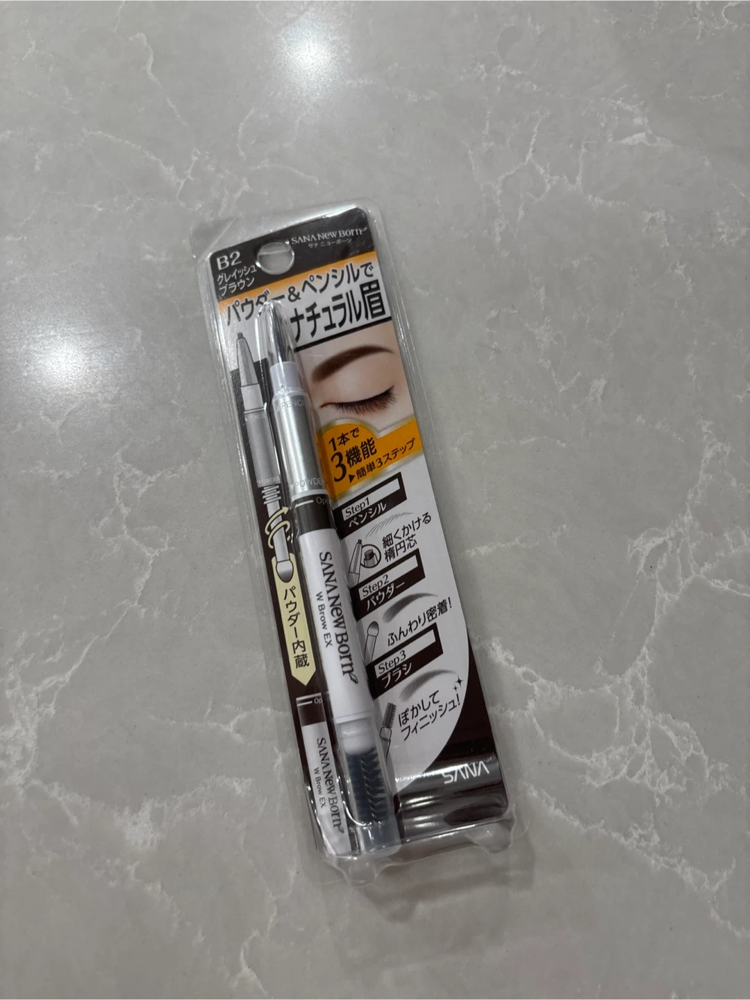I'm selling a Sana New Born W Brow EX N in B2 shade. It's a powder and pencil eyebrow product for creating natural-looking brows. This comes with three functions in one: pencil, powder, and brush