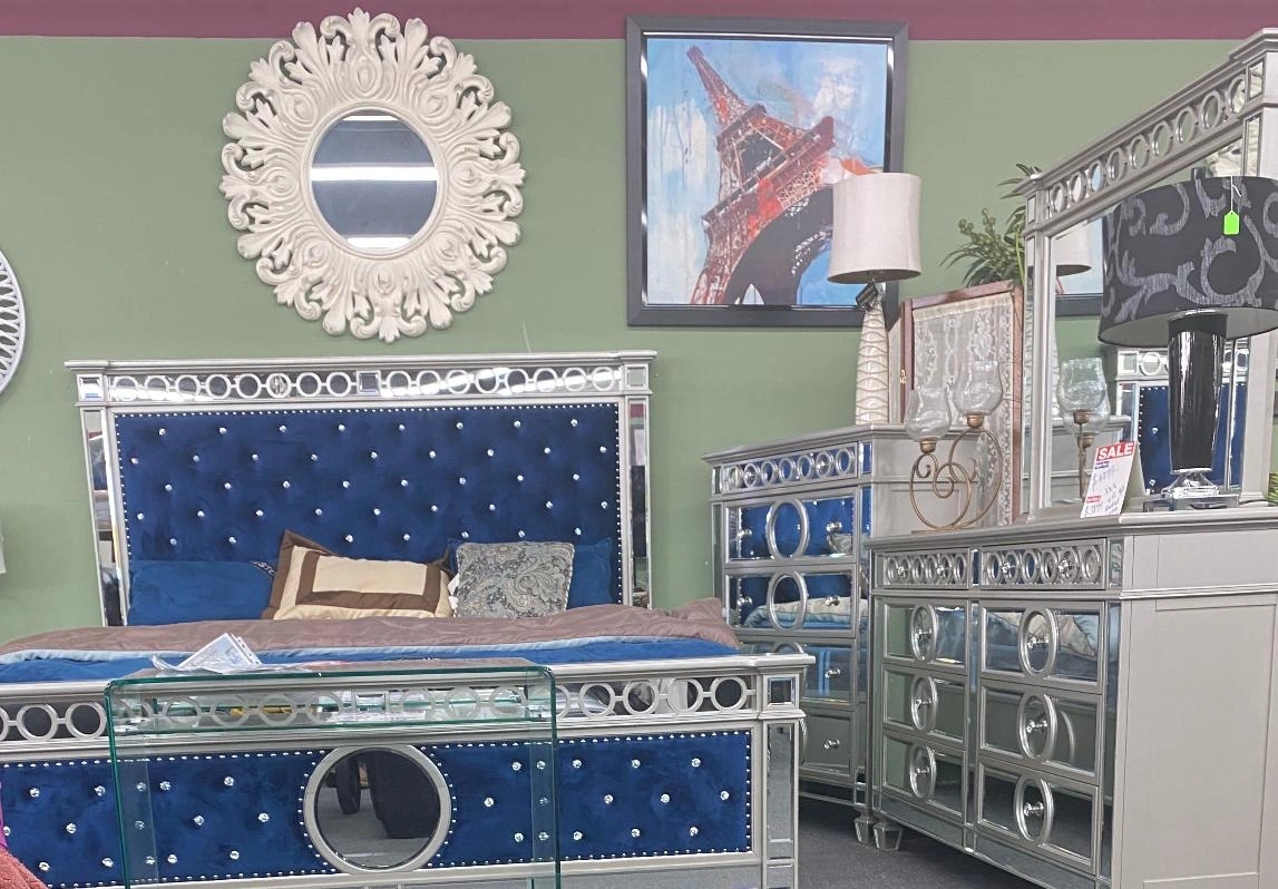 Selling a silver mirrored nightstand. It has a very unique design with mirrored accents and silver finish. It would look great in any bedroom!