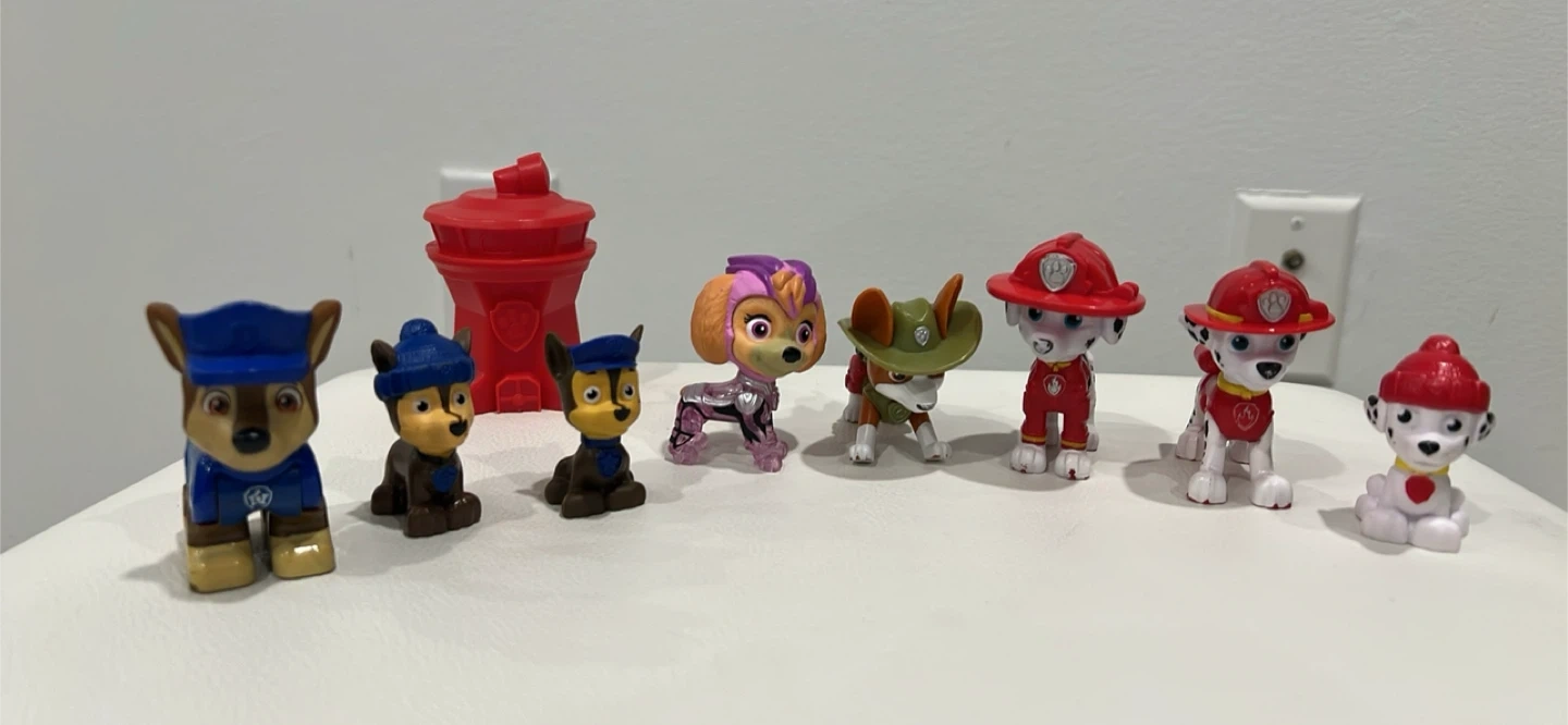 Selling a set of Paw Patrol figurines! Includes Chase, Marshall, Skye, and more. Great for kids who love Paw Patrol!