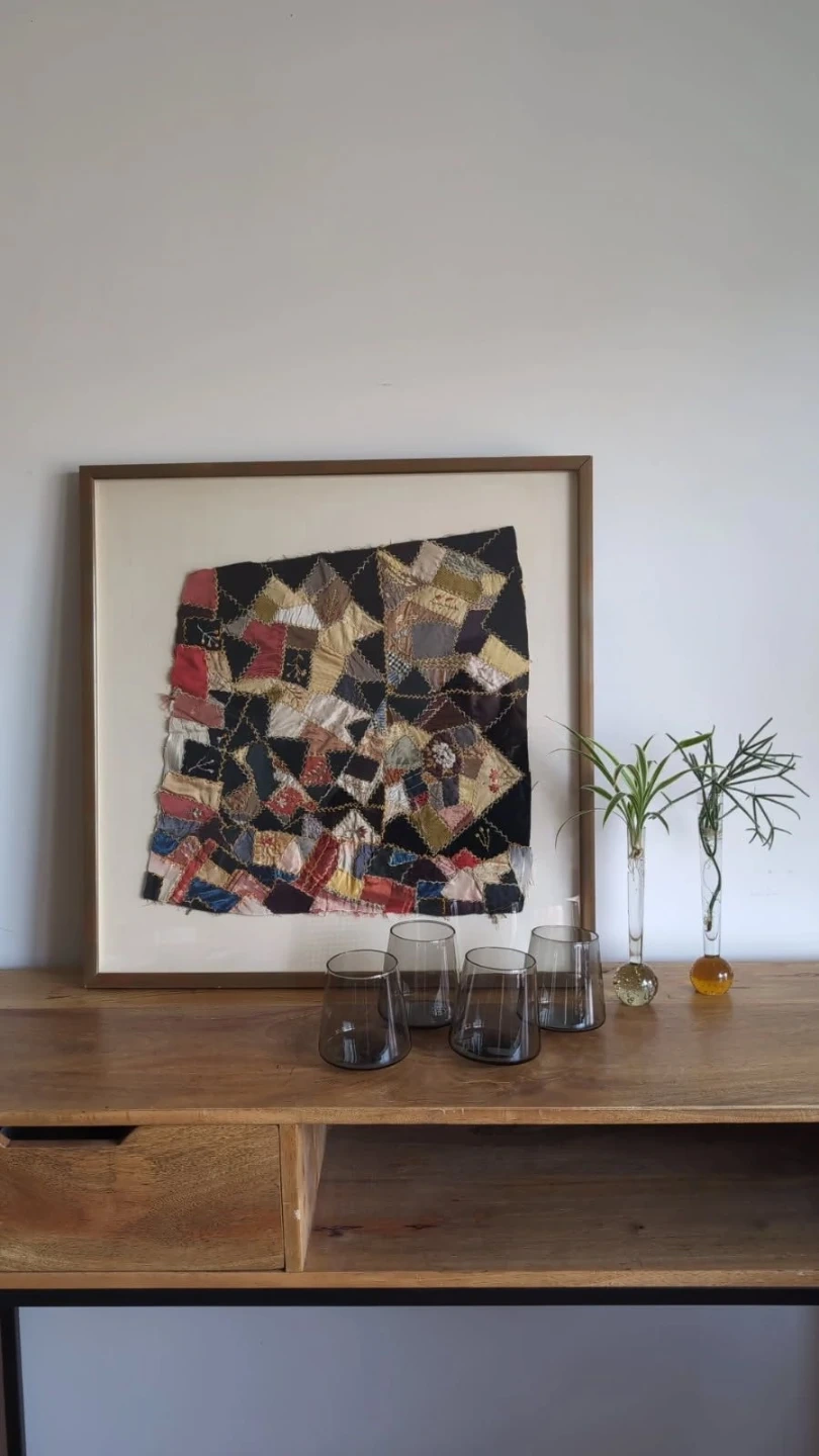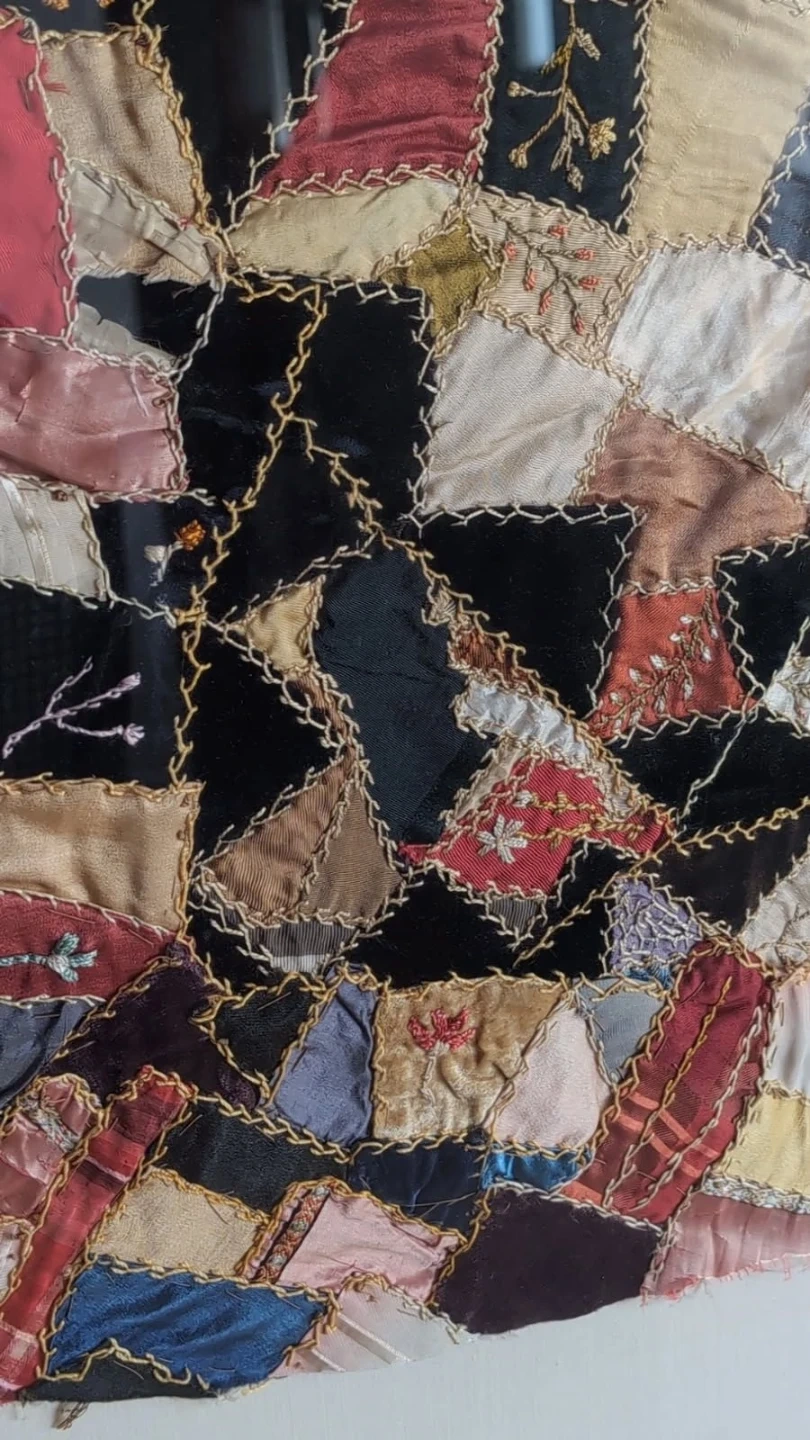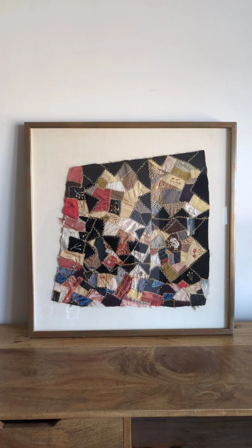 1900s Victorian Crazy Quilt Fragment Professionally Framed!