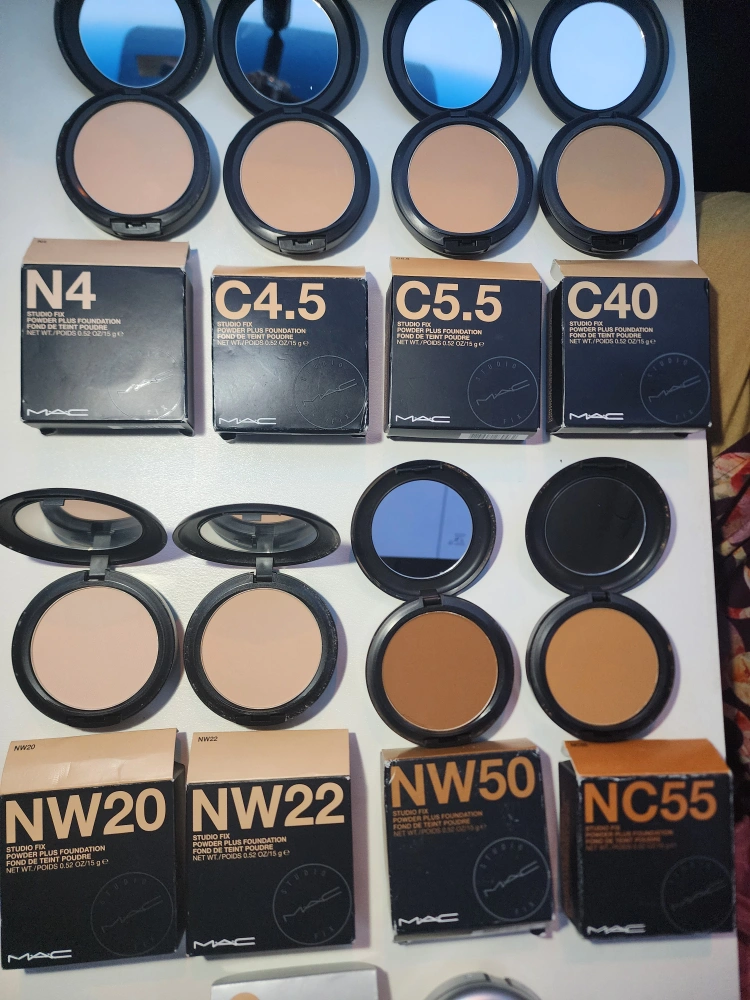 Selling a variety of powder foundations from MAC and Estee Lauder. Available are MAC Studio Fix in shades N4, C4.5, C5.5, C40, NW20, NW22, NW40,NW50, NC55, and Estee Lauder Double Wear in 2N1 and 4N1 shades. Perfect for achieving a flawless finish!