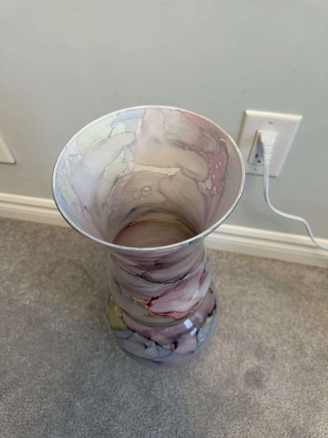 This is a beautiful decorative vase featuring a unique swirl design. It would look great in any room and is sure to add a touch of elegance to your home