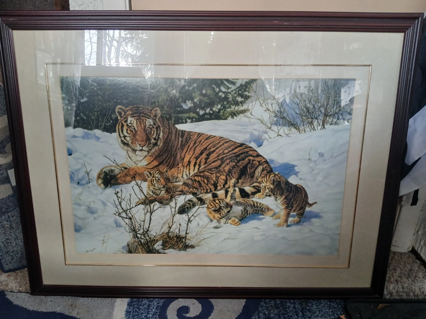 This item is a limited edition framed art print titled "My Three Sons" by renowned wildlife artist John Banovich.