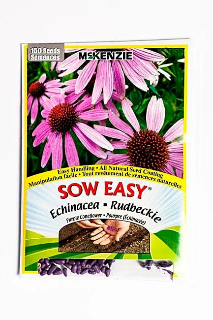 Selling 10 packets of McKenzie Sow Easy Echinacea Rudbeckia seeds at $0.75 per pack. The packet contains 150 seeds. These are easy handling seeds with an all-natural seed coating for easy manipulation and sowing