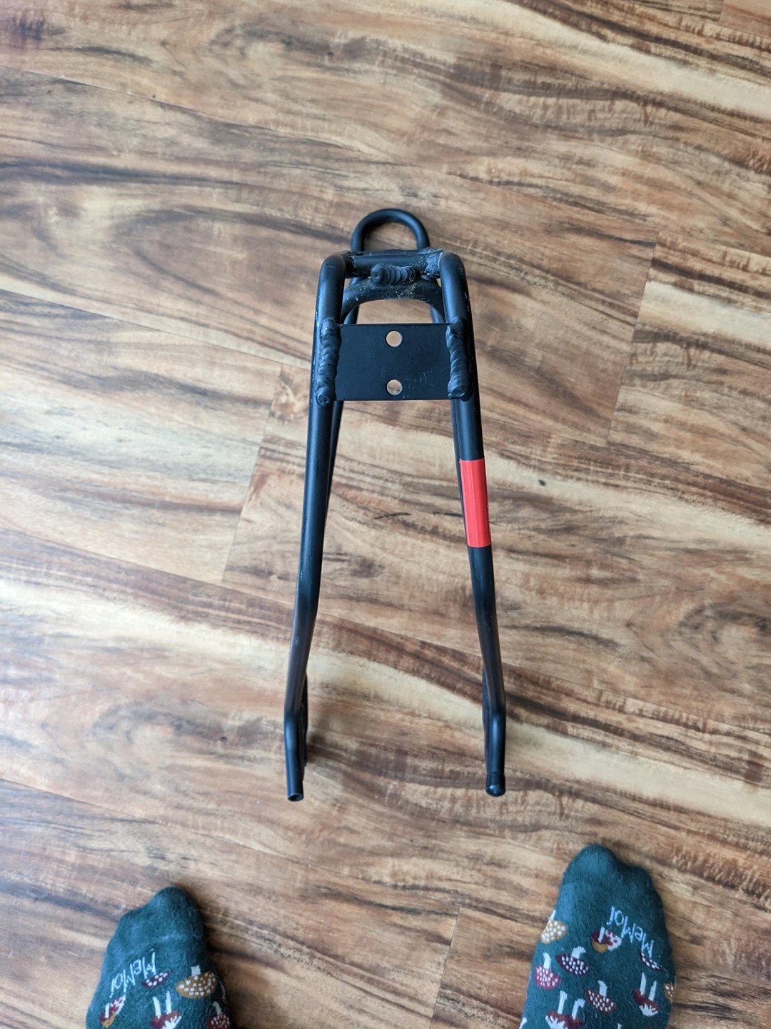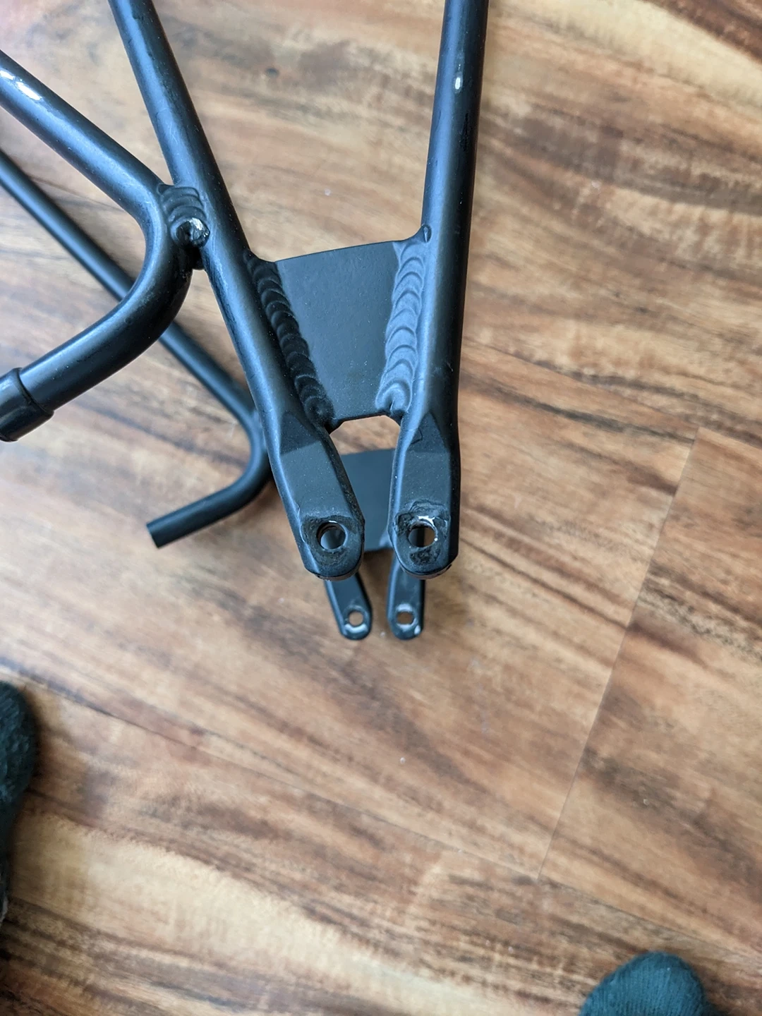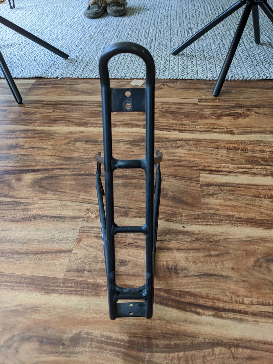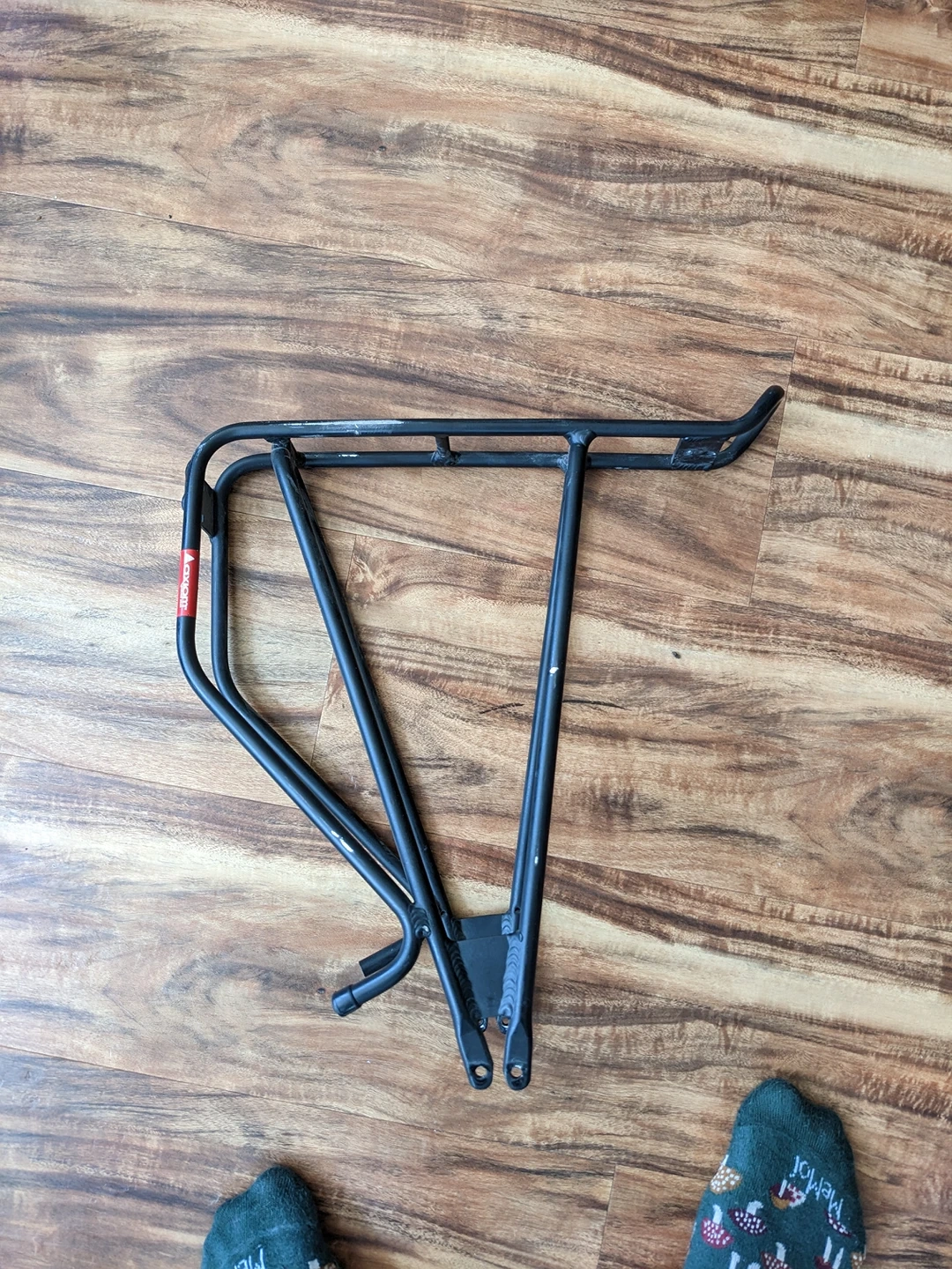 Very lightweight, aerodynamic back rack for your bike or bicycle. Use for attaching side panniers. Missing attachment to bypass disc breaks. No bolts, just the frame as shown. Structurally perfect condition, cosmetic running/wear.