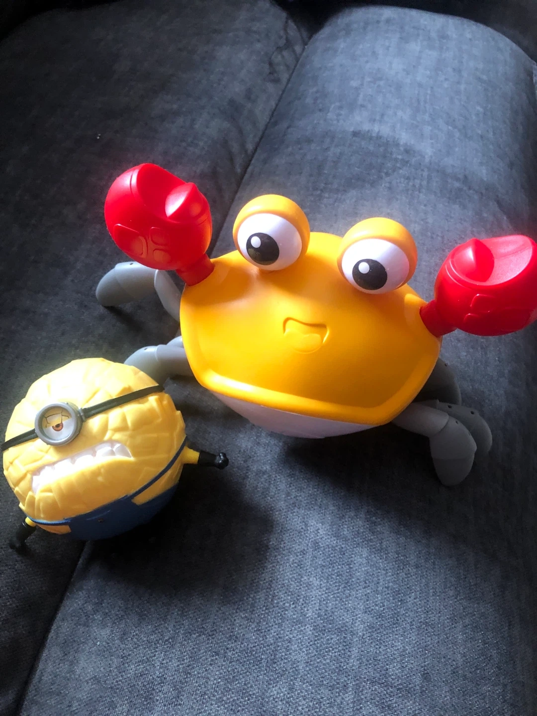 🎉✨Free🎊⭐️A yellow crab toy with red claws (no batteries included) and a Minion toy. These toys are fun for kids. Plastic material.