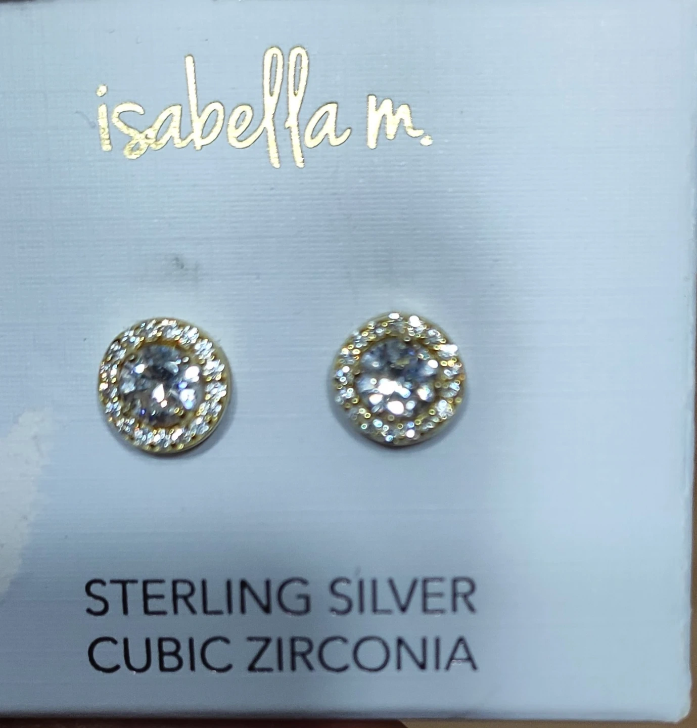 Isabella M. stud earrings crafted from sterling silver. These earrings feature cubic zirconia stones for sparkle. A classic accessory that's perfect for everyday wear or dressing up an outfit!