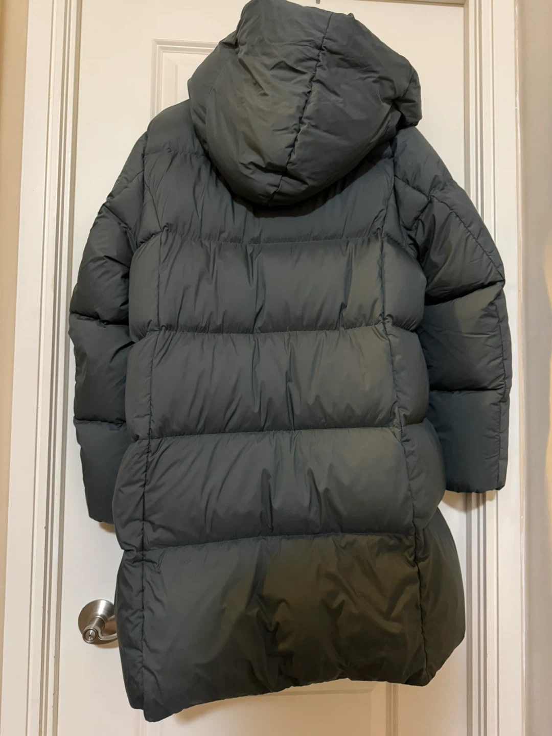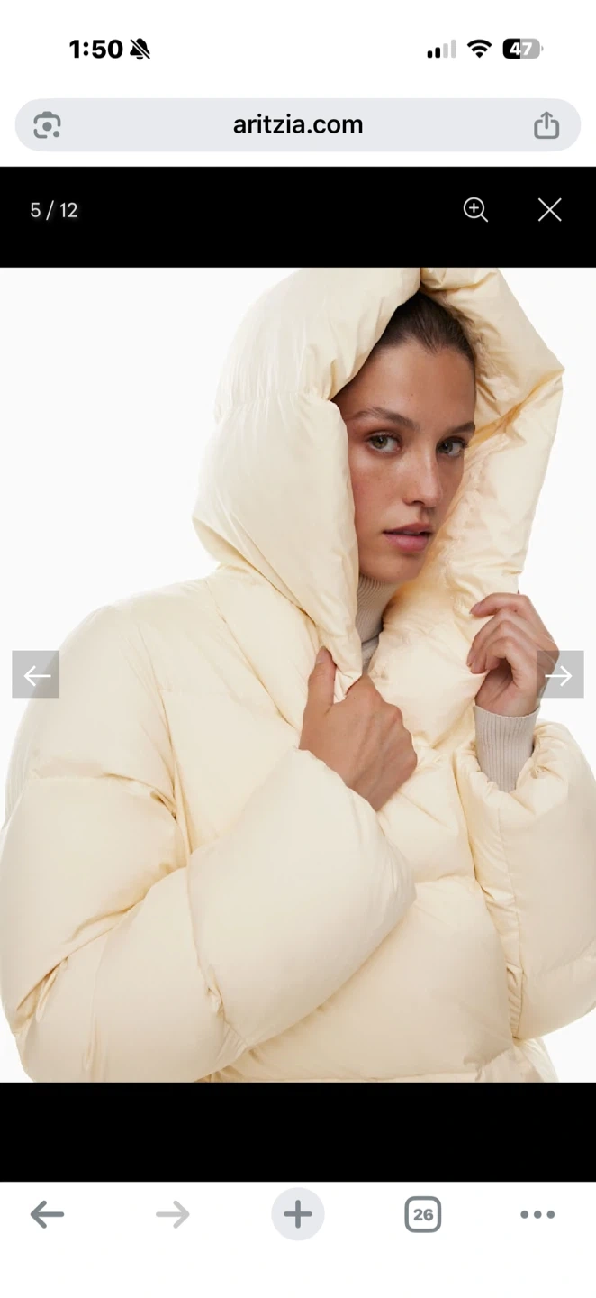 I'm selling a size L 'The Duvet Puffer' jacket - mid length, classic fit. It's a stylish and cozy jacket perfect for staying warm during the colder months!