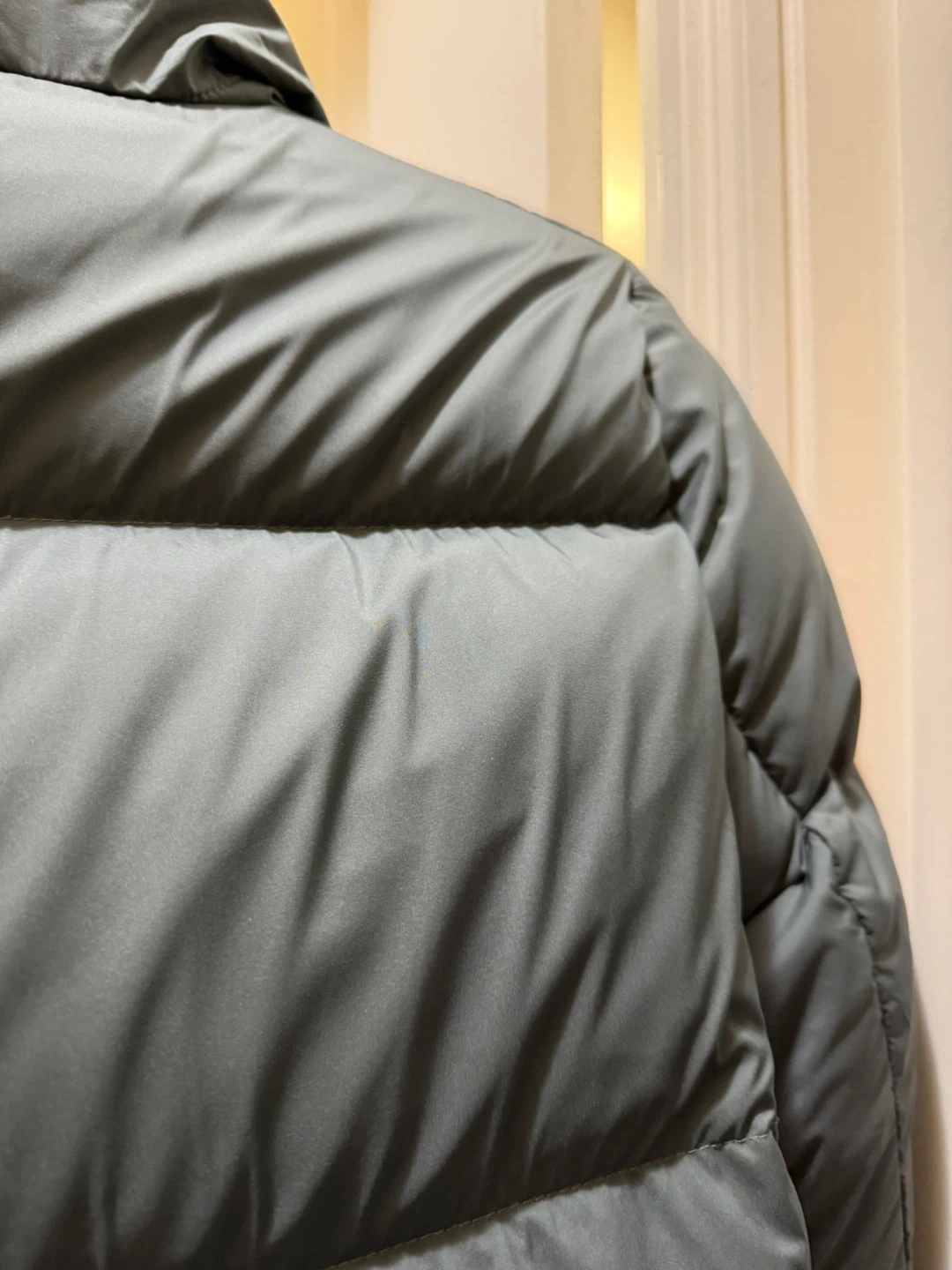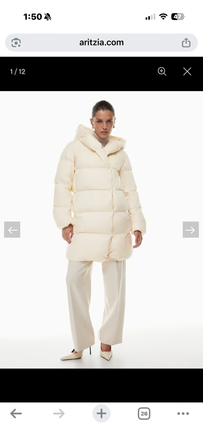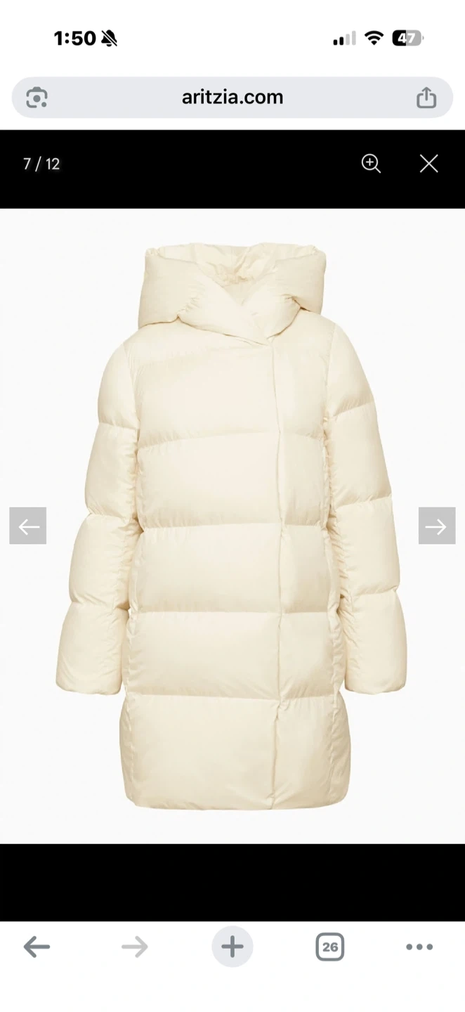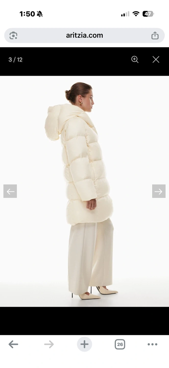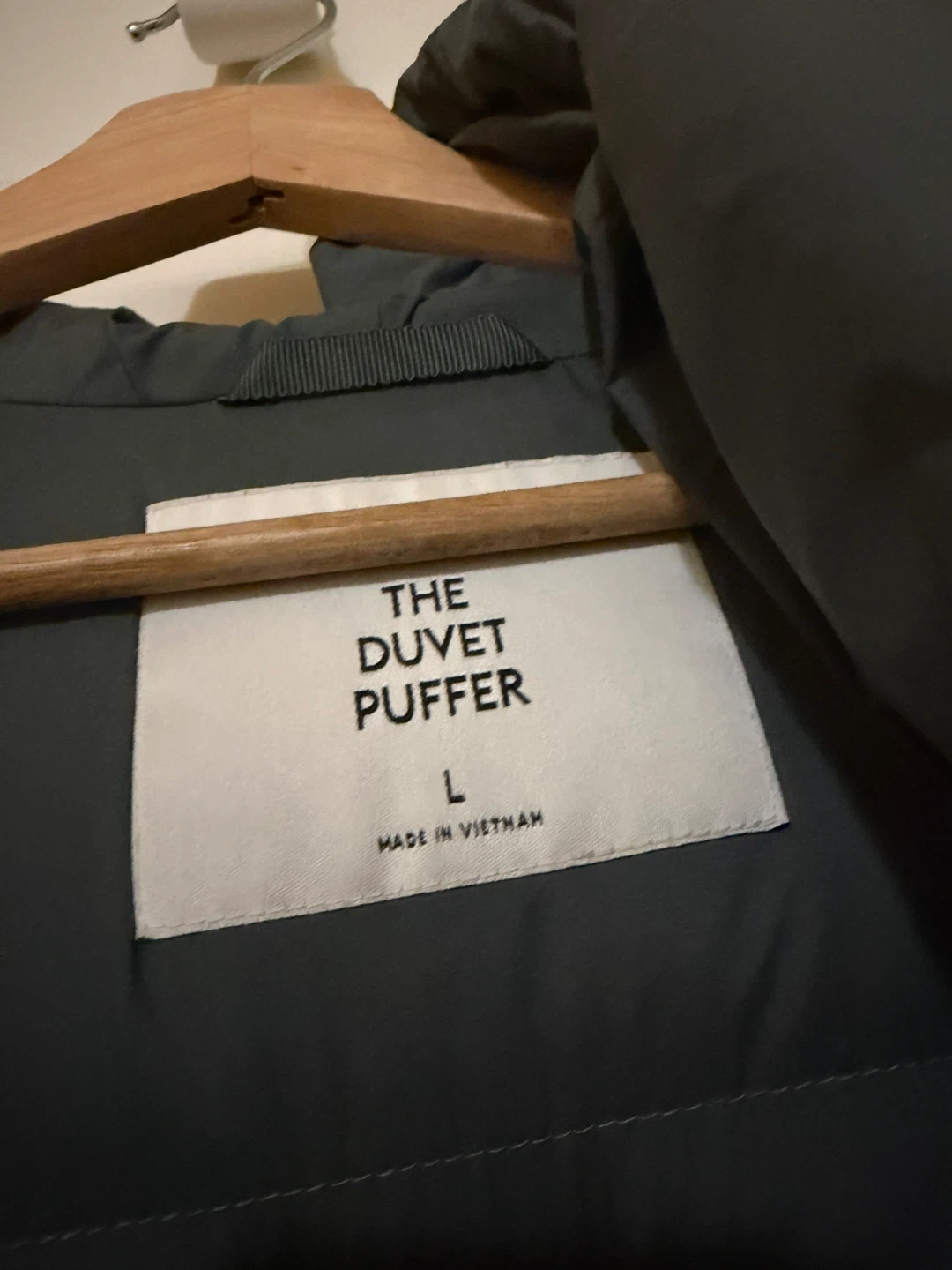 I'm selling a size L 'The Duvet Puffer' jacket - mid length, classic fit. It's a stylish and cozy jacket perfect for staying warm during the colder months!