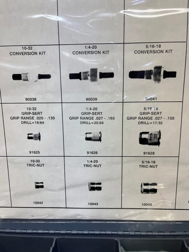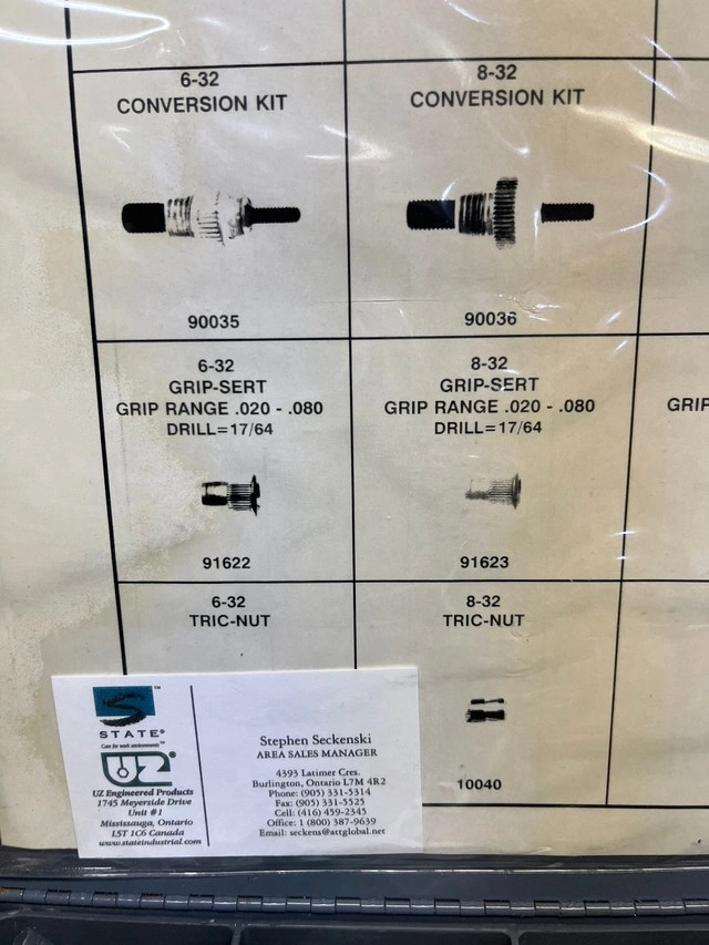 For sale is a Grip Sert & Tric Nut Assortment 00763 by UZ Engineered Products. Please see photos. Cash only. Pickup is in Etobicoke, near Queensway and Islington.