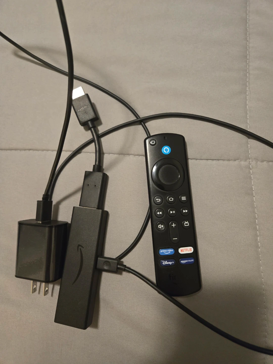 Stream your favourite shows with this Amazon Fire TV Stick. It connects directly to your TV via HDMI. Includes the remote and power adapter. Perfect for easy access to all your streaming apps!