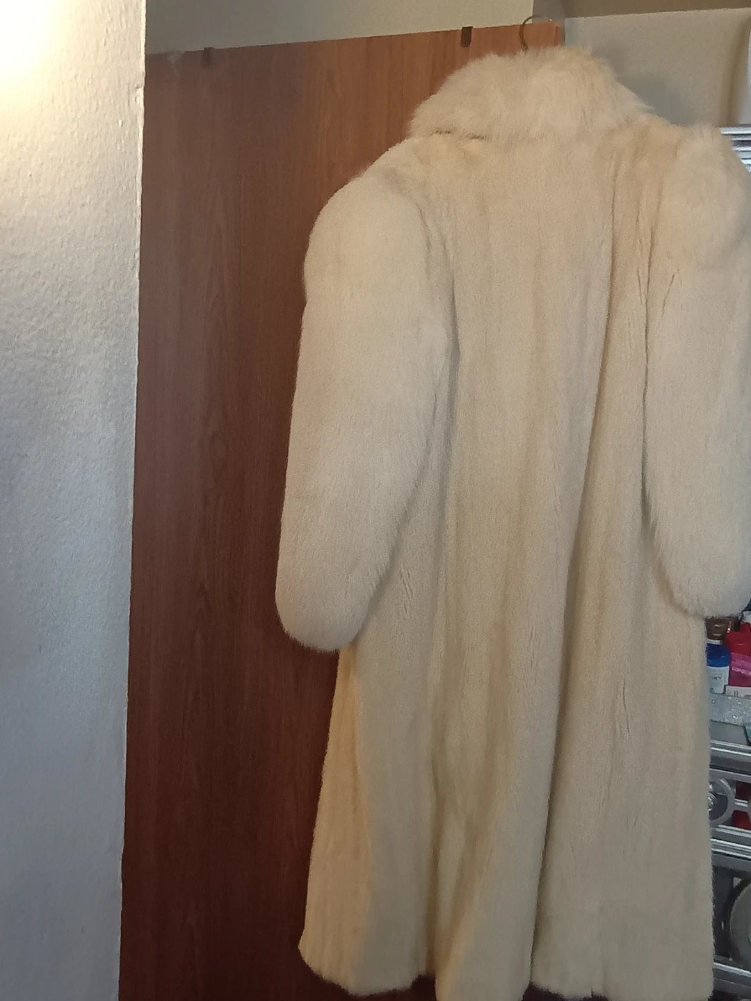Selling a vintage mink/fox fur coat. It's a beautiful piece in a cream or off-white color. Perfect for adding a touch of elegance to your wardrobe