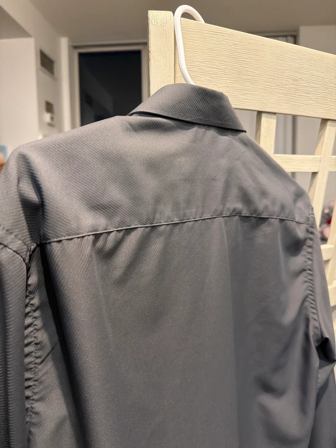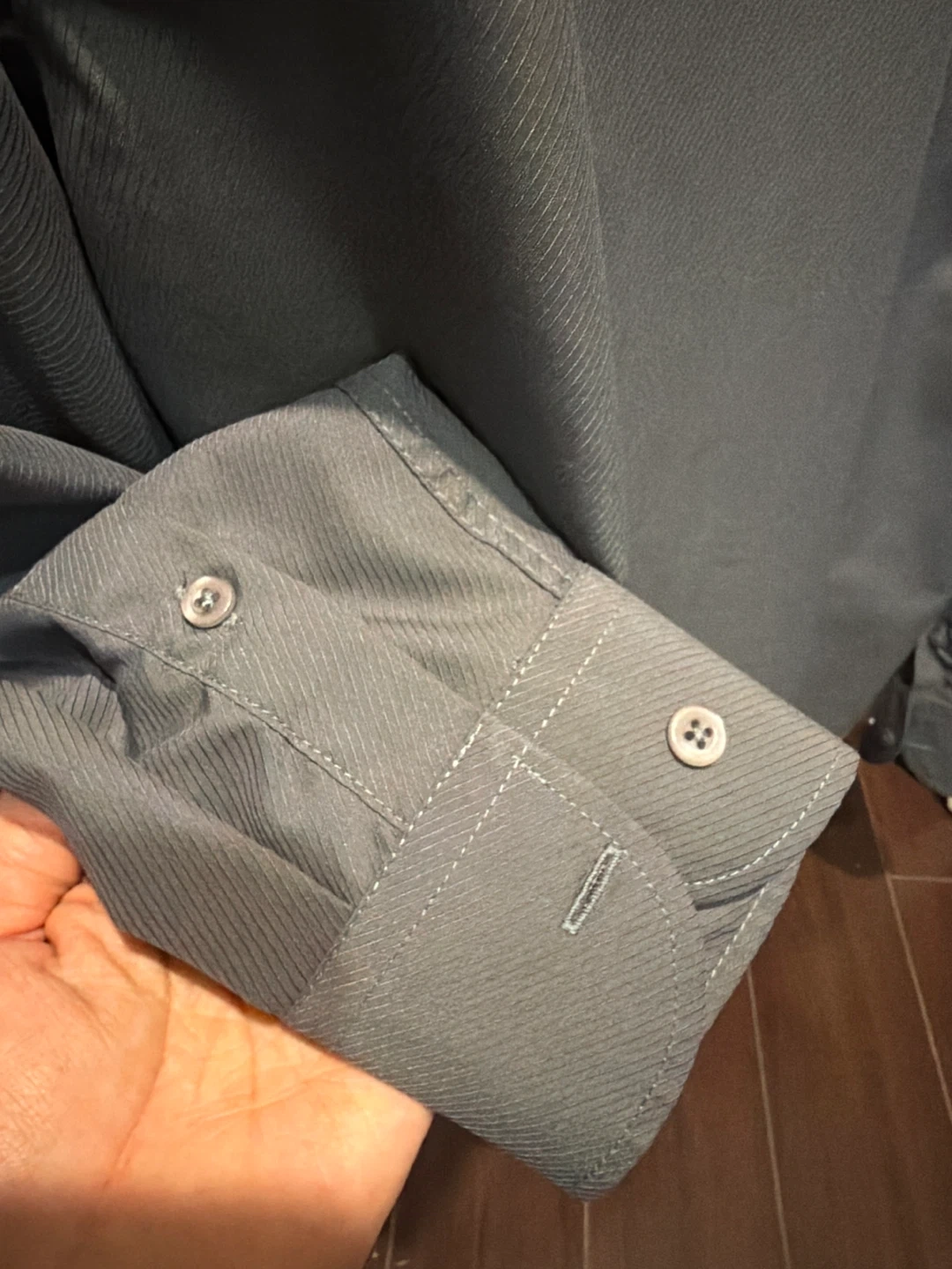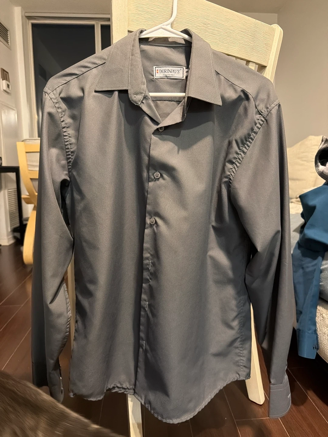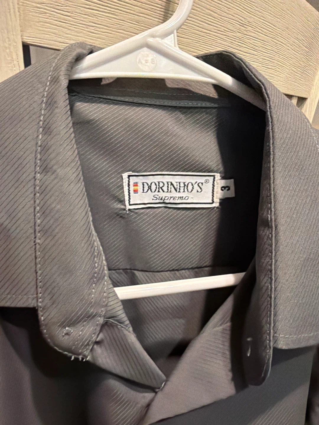 Dorinho's Supremo men's long-sleeve dress shirt in grey. It has a subtle pinstripe pattern. The size is L - XL. No dirty and scratches