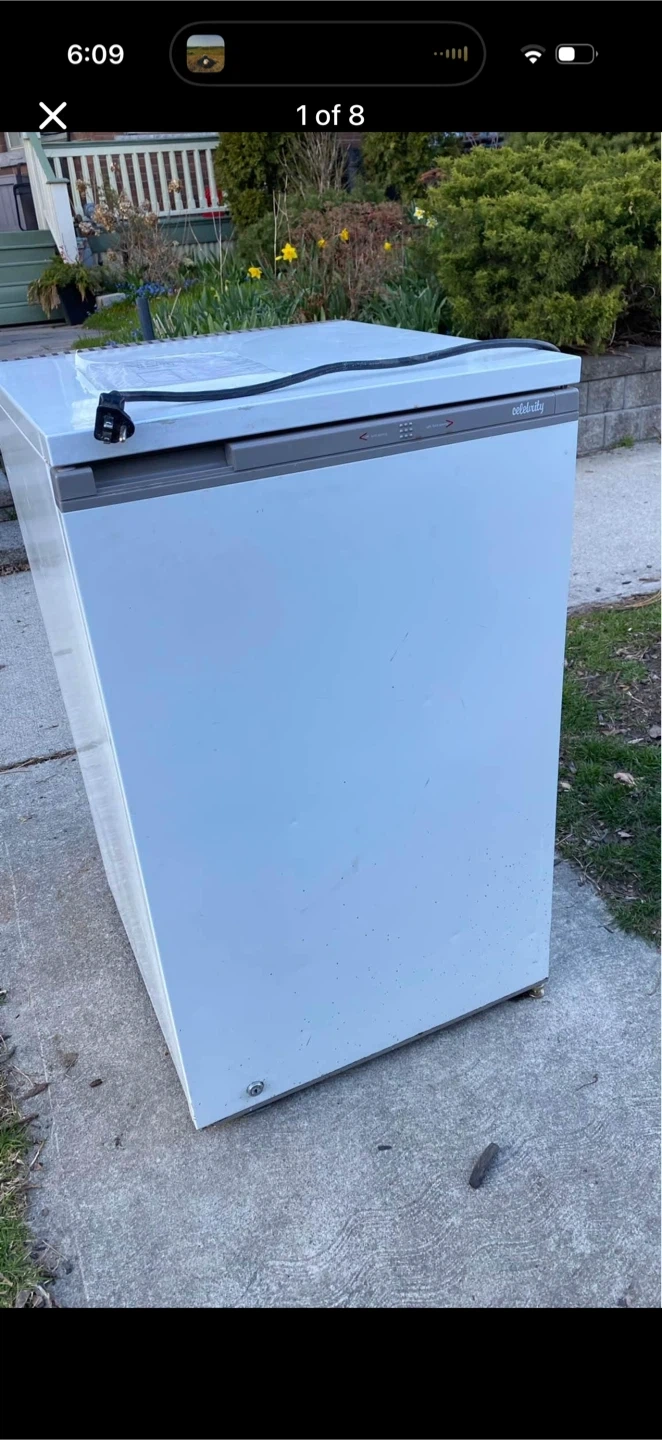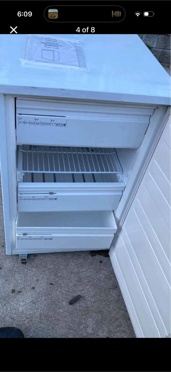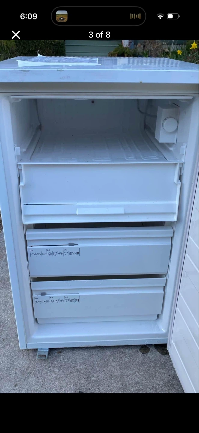 This is a white Celebrity upright freezer. It features three clear freezer drawers. A compact freezer for your extra food storage needs!