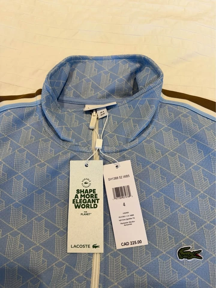 Brand new Lacoste men’s zip-up jacket, never worn and still with original tags.