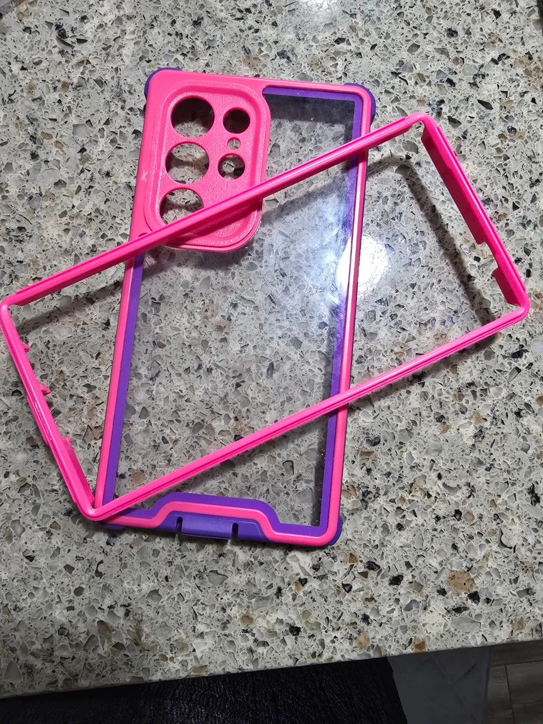 This phone case is designed for the Samsung Galaxy S23 Ultra. It's a two-piece protective case with a clear back and a colourful bumper. The case offers good protection for your phone.